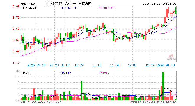 1月13日,上证50ETF工银(510850)跌0.72%,成交额408.97万元。当日份额减少60.00万份,最新份额为1.01亿份,近20个交易日份额增加4500.00万份。最新资产净值计算值为3.76亿元。