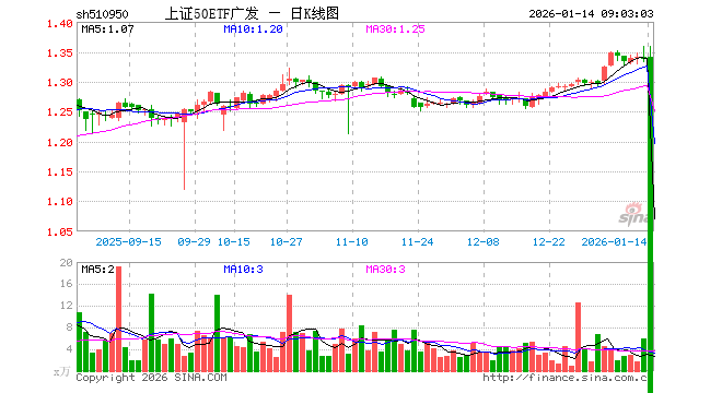 1月13日,上证50ETF广发(510950)跌0.22%,成交额803.16万元。当日份额减少300.00万份,最新份额为6195.00万份,近20个交易日份额减少525.00万份。最新资产净值计算值为8292.63万元。