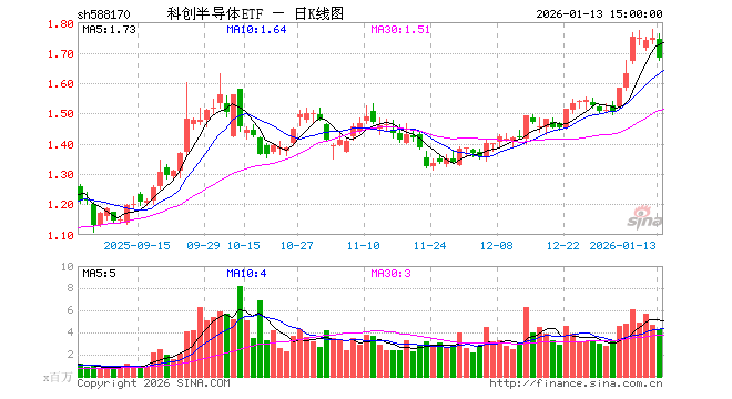 1月13日,科创半导体ETF(588170)跌3.72%,成交额7.30亿元。当日份额增加1200.00万份,最新份额为27.43亿份,近20个交易日份额增加3.04亿份。最新资产净值计算值为46.19亿元。