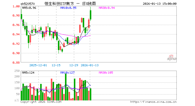 1月13日,恒生科技ETF南方(520570)涨0.00%,成交额9746.20万元。当日份额增加6900.00万份,最新份额为26.84亿份,近20个交易日份额增加12.89亿份。最新资产净值计算值为26.21亿元。