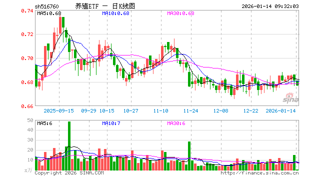 1月14日,养殖ETF(516760)开盘涨0.00%,报0.681元。养殖ETF(516760)重仓股方面,牧原股份开盘涨0.02%,温氏股份跌0.06%,海大集团跌0.09%,新希望涨0.00%,梅花生物跌0.10%,大北农跌0.25%,圣农发展涨0.00%,生物股份跌2.02%,天康生物涨0.14%,立华股份涨0.00%。