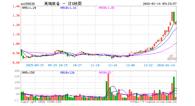 1月14日,高端装备ETF(159638)开盘跌1.72%,报1.200元。高端装备ETF(159638)重仓股方面,中航沈飞开盘跌0.32%,航发动力跌0.52%,中航光电跌0.55%,中航西飞跌0.45%,中国长城涨0.56%,菲利华涨0.01%,航天电子跌1.73%,中航机载跌0.07%,西部超导跌1.01%。