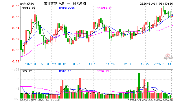 1月14日,农业ETF华夏(516810)开盘跌0.23%,报0.860元。农业ETF华夏(516810)重仓股方面,牧原股份开盘涨0.02%,温氏股份跌0.06%,海大集团跌0.09%,藏格矿业跌0.44%,盐湖股份跌0.15%,新希望涨0.00%,亚钾国际涨0.08%,梅花生物跌0.10%,扬农化工跌0.06%,大北农跌0.25%。