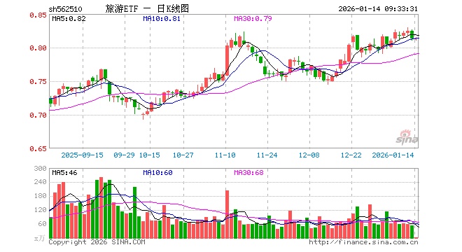 1月14日,旅游ETF(562510)开盘涨0.00%,报0.813元。旅游ETF(562510)重仓股方面,中国中免开盘涨0.10%,上海机场跌0.03%,中国东航跌0.83%,宋城演艺涨0.12%,南方航空跌0.90%,中国国航跌0.68%,华侨城A跌0.38%,锦江酒店涨0.00%,春秋航空跌0.03%,首旅酒店跌0.63%。