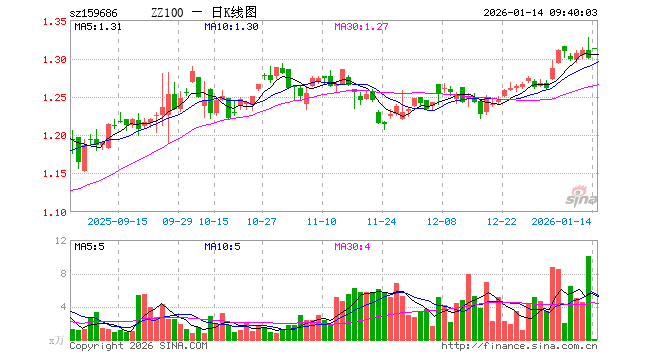 1月14日,A100ETF易方达(159686)开盘涨1.00%,报1.313元。A100ETF易方达(159686)重仓股方面,宁德时代开盘涨0.29%,贵州茅台涨0.00%,中国平安涨0.22%,招商银行涨0.00%,紫金矿业涨0.97%,中际旭创涨1.64%,美的集团涨0.00%,长江电力涨0.33%,兴业银行跌0.19%,立讯精密跌0.70%。