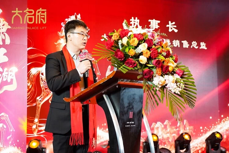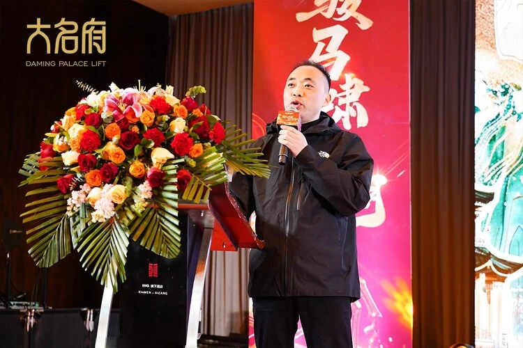 大名府家用电梯总经理王健先生首先发表致辞。以“总舵主”之姿登台亮剑,深度剖析行业变局,铿锵肯定全国分舵逆势突围的辉煌战绩!他强调:“过去,生意在于店;未来,生意更在于人,”2026年总舵将全面启动“个人IP赋能计划”,为新征程锚定核心航向,尽显领航者的远见与魄力!