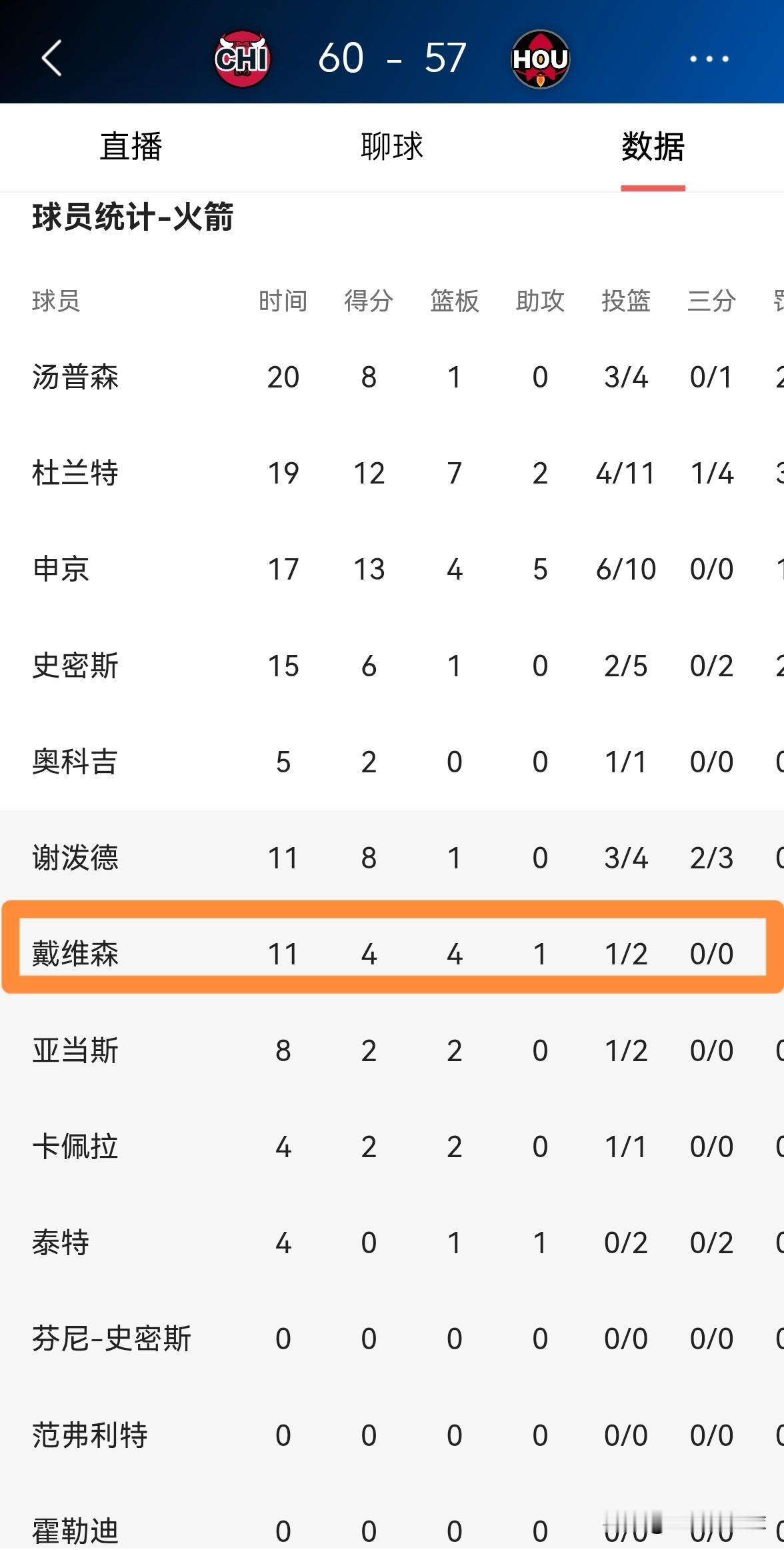 我强烈建议火箭主帅乌度卡重用戴维森!在今天火箭主场迎战公牛的上半场比赛中,重新获得出场机会的戴维森替补出战11分钟,投篮2中1,其中罚球3中2得到4分,还有4篮板1助攻1盖帽,他的场上正负值为+6。 作为一名双向合同球员,戴维森能够在前两节比赛中打出如此出色的表现实属不易,这充分说明戴维森值得重用。