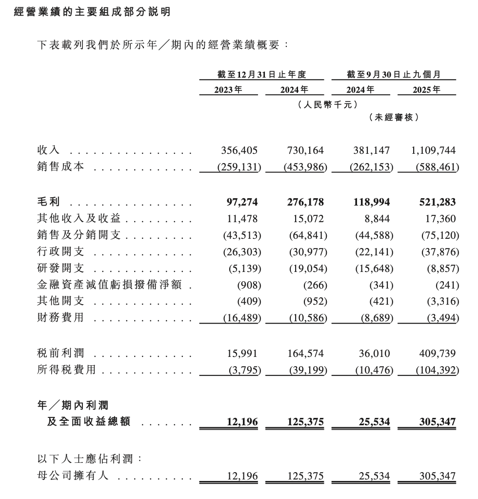 2025年前三季度,公司实现收入为11.1亿元,同比增长191.16%;期内利润及全面收益总额为3.05亿元,同比增长1095.84%。