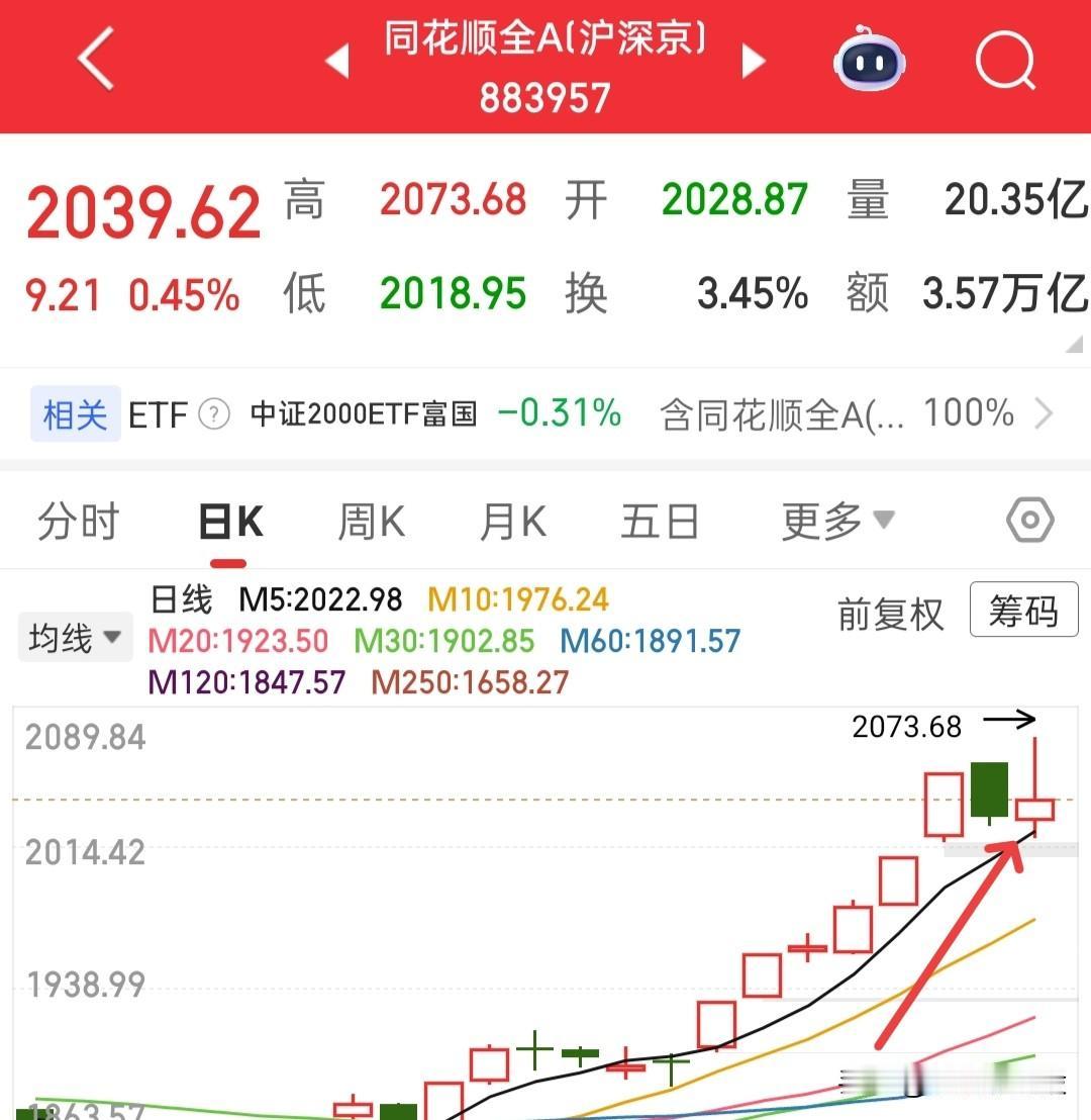 莫慌,我们现场就看多空争斗,谁能赢,量能越来越大,今天大概就要到4万亿了,空头猛烈砸,多头积极接,大盘围绕这5日线这里,千军万马再厮杀,就看看谁的力量强了…… 今天有点恶心,盘中富贵好难受啊,今天调的两个也是稀里哗啦的往下跌,你们有没有由盈转亏啊…… 那么今天我们收盘看什么?看全A,就是同花顺全A,它能不能收一根阳线,如果可以,我还是保持3成仓继续滚动,不加不减!