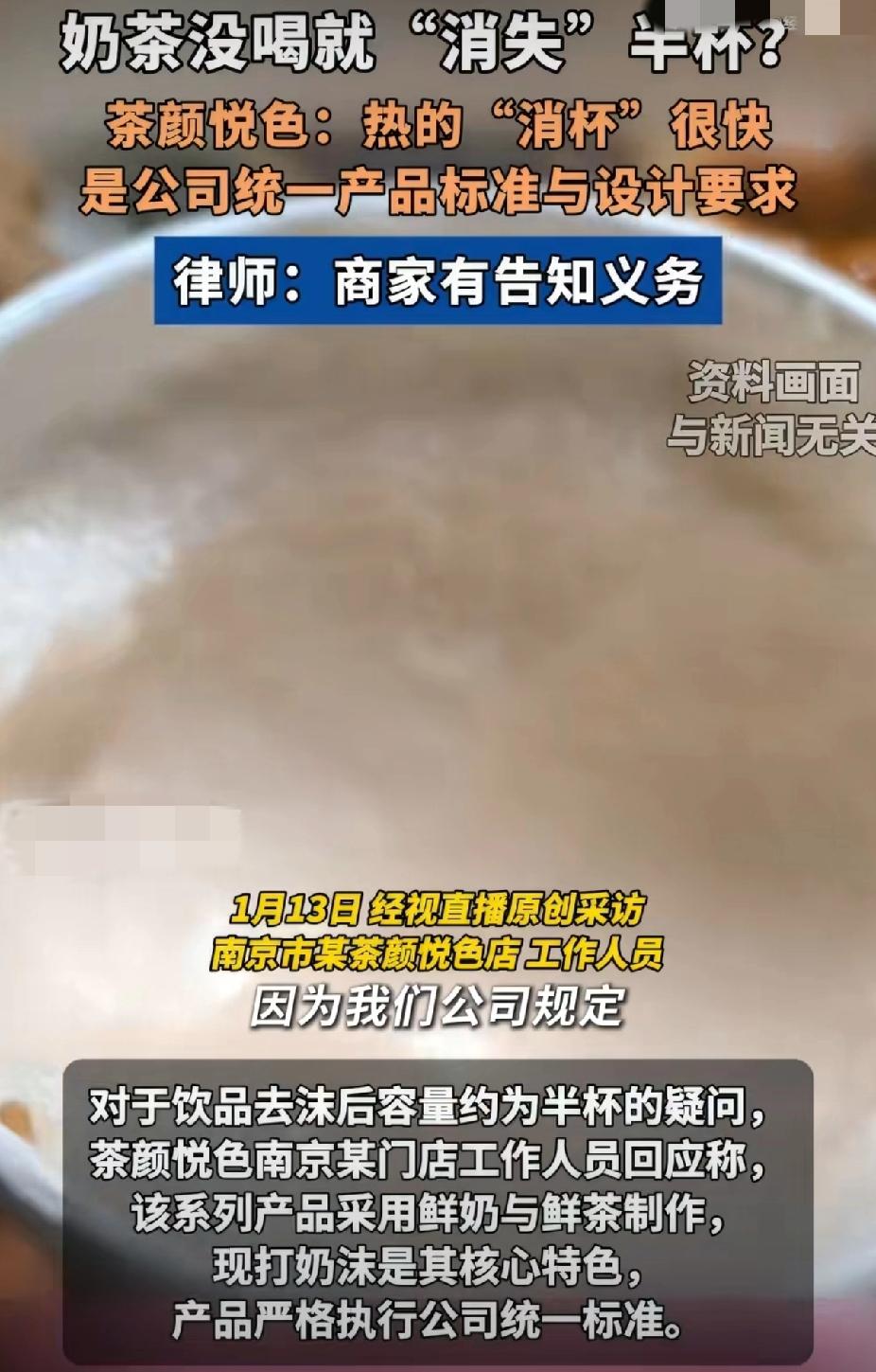 笑不活!茶颜悦色奶茶放几分钟变半杯,官方回应:这是工艺特色! 家人们!最近好