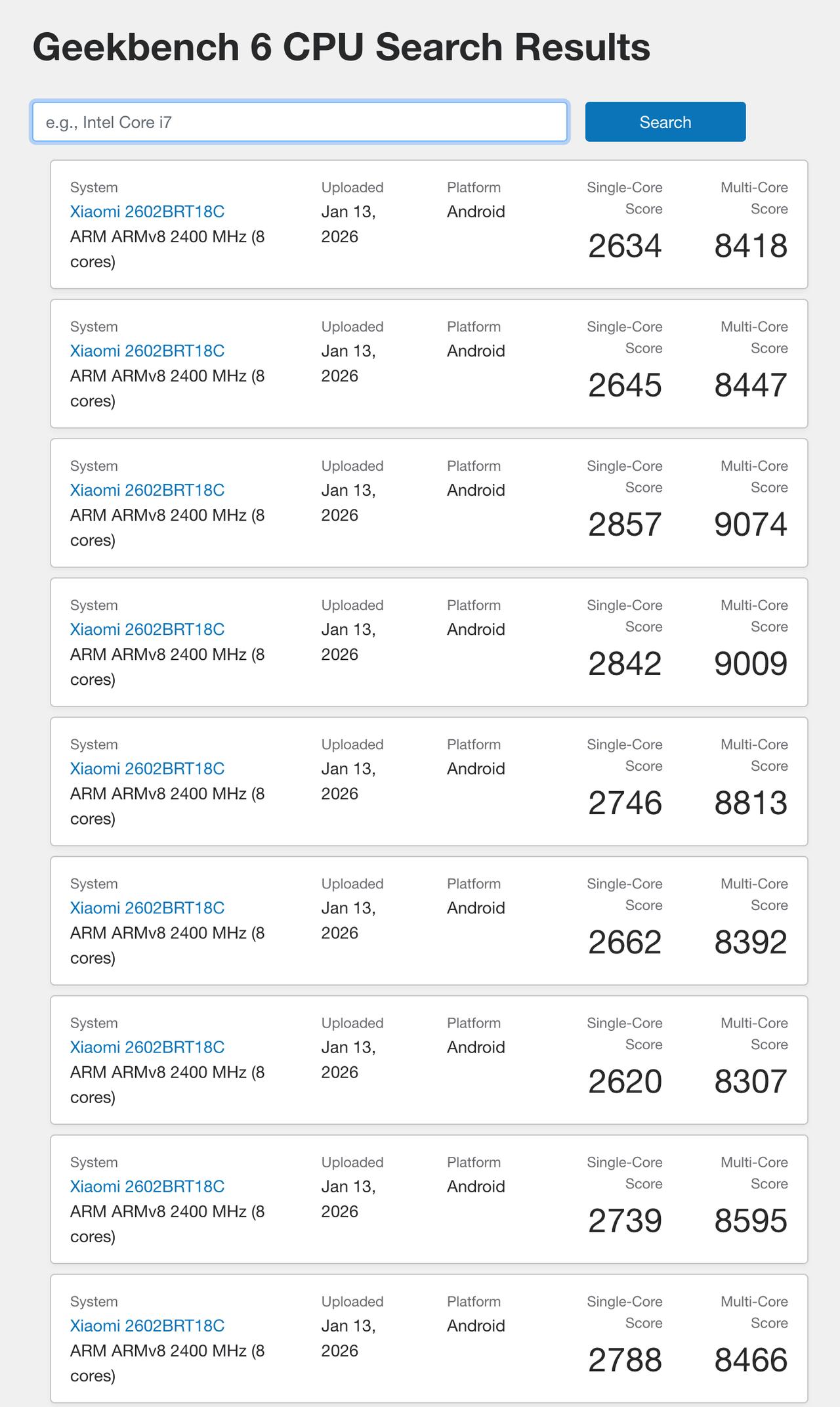REDMI Turbo 5 Max 的 GeekBench6 跑分出炉,型号 2