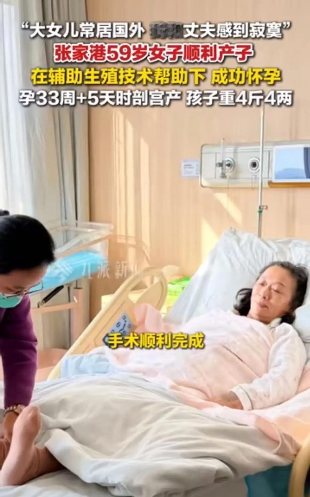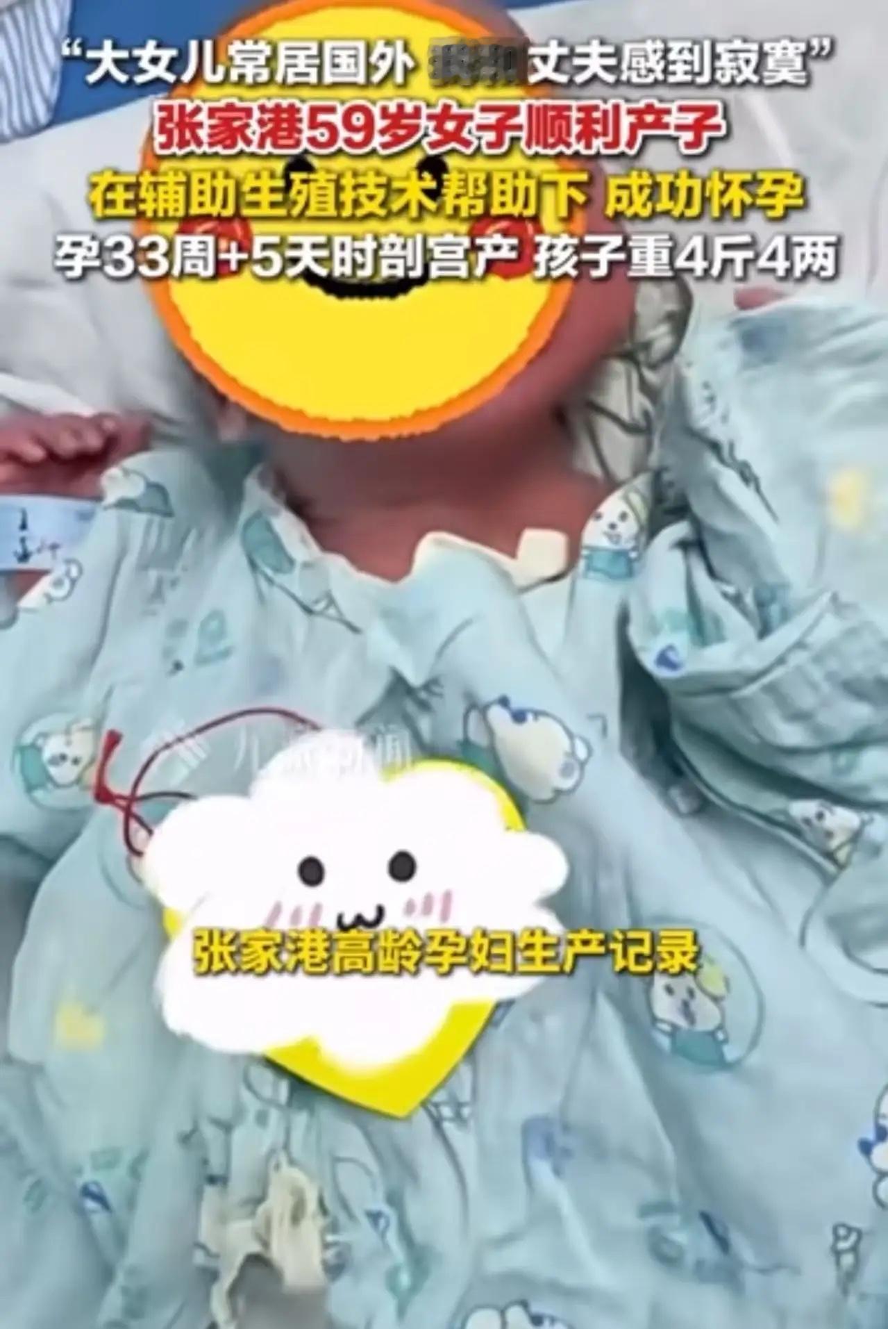 苏州59岁女子诞下4斤4两男婴,刷新了当地孕妇生产年龄纪录。女子:“大女儿定居国