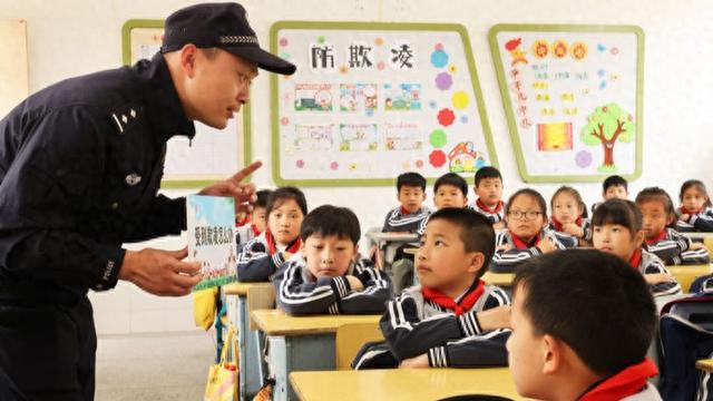 在浙江省湖州市德清县乾元镇中心小学,乾元派出所民警为小学生讲解如何识别和应对校园欺凌行为。新华社发(倪立芳摄)