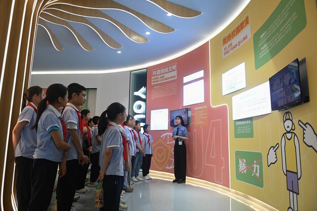 浙江省台州市仙居县安洲小学的学生在未成年人法治教育基地了解防校园欺凌的法律知识。新华社记者黄宗治摄