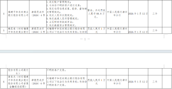 福建平和农村商业银行被罚88.8万元:违反账户管理规定