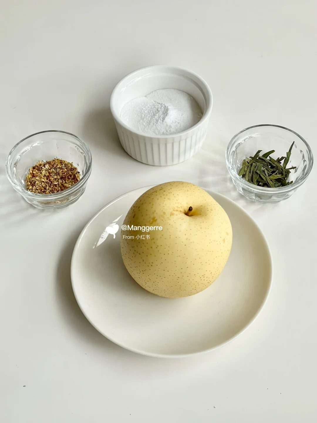 雪梨、绿茶5g、白凉粉30g、冰糖10g