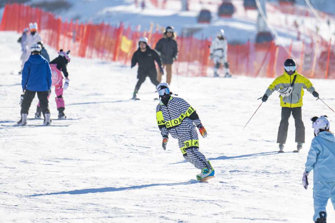 1月13日,滑雪爱好者在新疆昌吉回族自治州阜康市天山天池国际滑雪场滑雪。