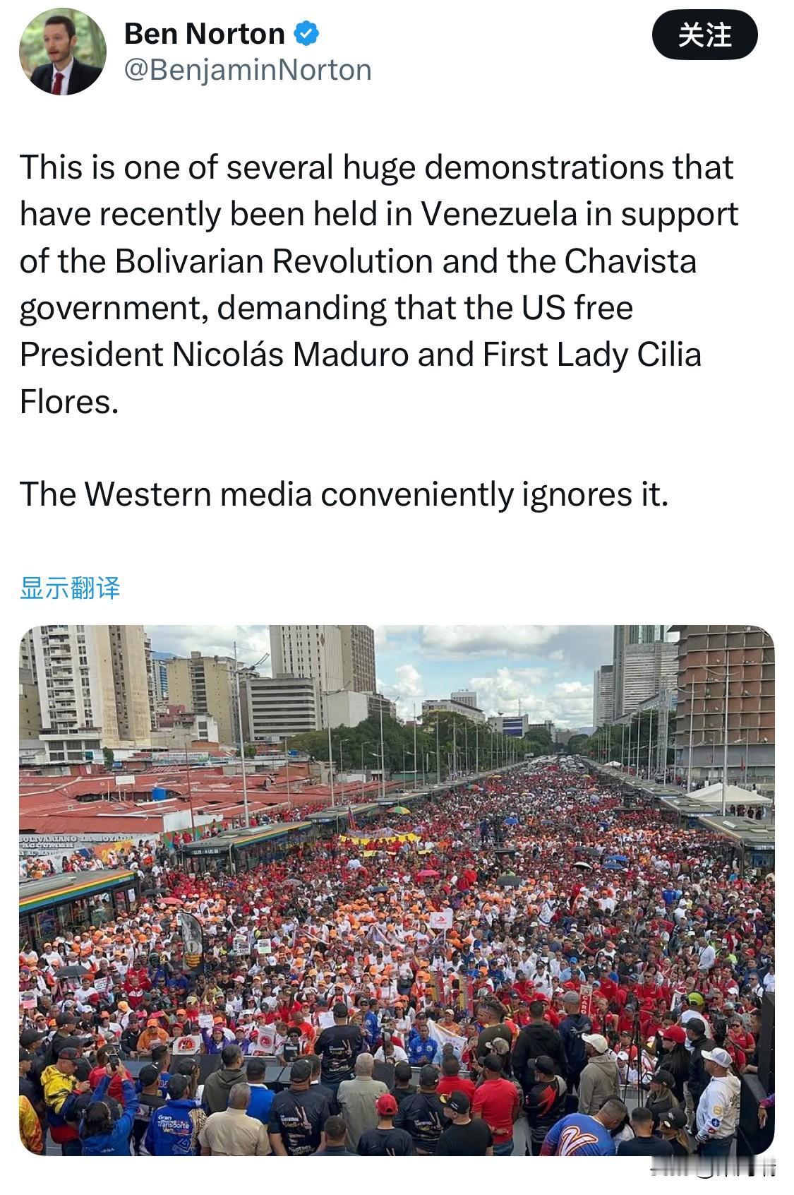 委内瑞拉近期举行了几场声援玻利瓦尔革命和查韦斯政府的大规模示威活动,示威者要求美国释放总统尼古拉斯·马杜罗和第一夫人西莉亚·弗洛雷斯。 1月13日 ,在加拉加斯玻利瓦尔大道发生了大规模的交通运输工人动员,要求释放总统尼古拉斯·马杜罗和他的妻子、副总统西莉亚·弗洛雷斯,总统的儿子尼古拉斯·埃内斯托·马杜罗·格拉也出席了活动。 西方媒体对此却选择性地忽略了。