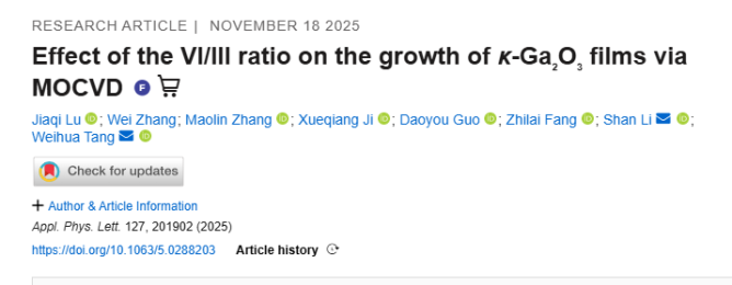 近日,南京邮电大学氧化镓半导体创新中心(IC-GAO)唐为华教授团队基于MOCVD技术系统分析了氧/镓前驱物摩尔比(Ⅵ/Ⅲratio)生长参数对κ-Ga2O3薄膜外延质量的影响。相关成果以“EffectoftheVI/IIIratioonthegrowthofκ-Ga2O3filmsviaMOCVD”为题发表在应用物理学旗舰期刊《AppliedPhysicsLetters》上,并被遴选为当期精选论文(FeaturedPaper),论文第一作者为南京邮电大学2024级博士研究生陆加淇。