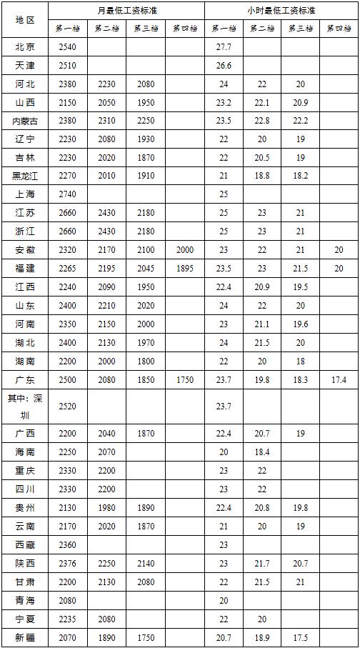 最低工资标准情况