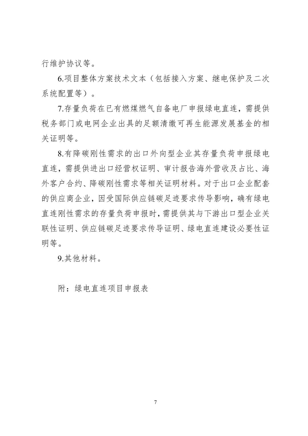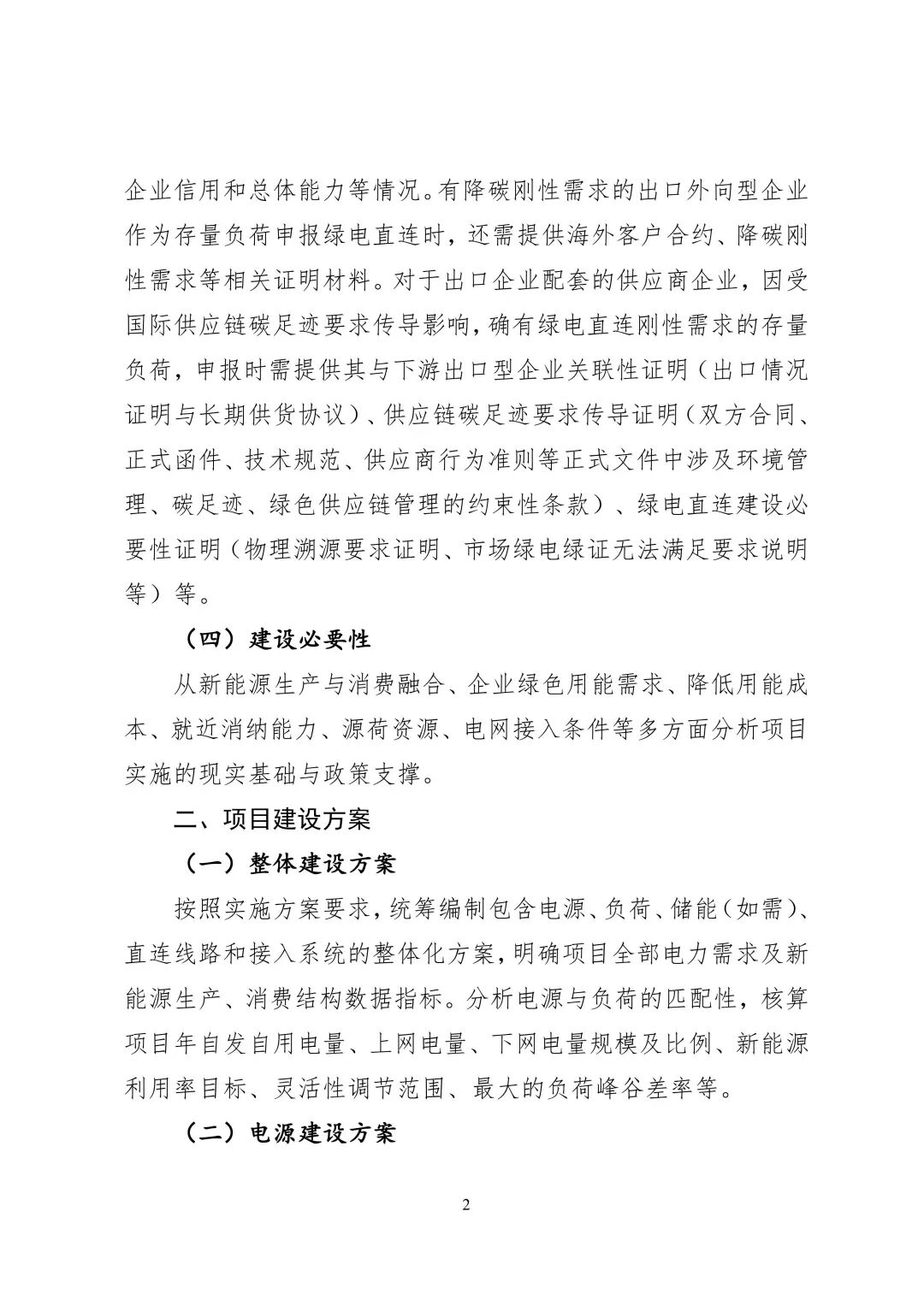 1.新增负荷、有降碳刚性需求的出口外向型企业的存量负荷可利用周边新能源资源配套建设新能源项目实现绿电直连。重点支持绿色用能需求大、负荷调节能力强、源荷匹配好的产业项目。新增负荷不含存量负荷增容、迁址、过户等。已报装但供电方案尚未答复或配套电网工程尚未批复立项的用电项目可作为新增负荷。新增负荷与存量负荷原则上不产生直接电气连接。