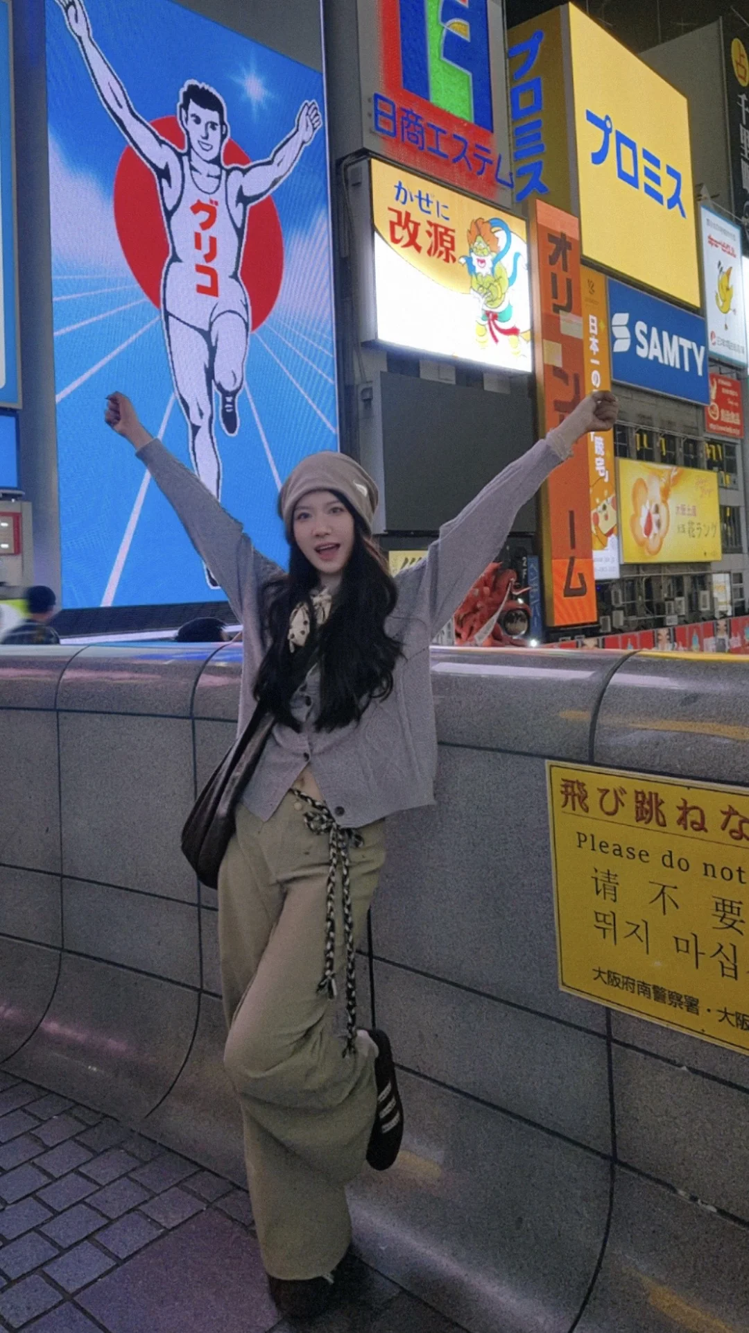 168/106 开始发送旅行碎片~ 🇯🇵第一套选择了比较日常舒适的机场穿搭 灰紫色毛衣➕卡其色裤子 被藤姐种草的阿迪真的很好看!而且也很好穿~ 我是国庆尾巴去的心斋桥 人还是很多的 格力高广告牌来都来了 打卡一下~
