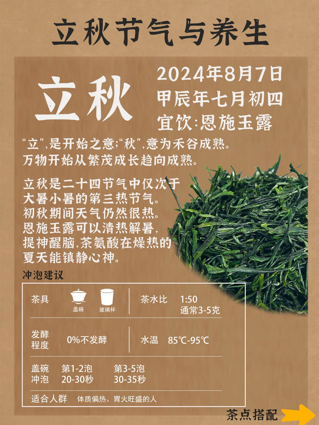 ⭐️立秋节气:2024年8月7日,甲辰年七月初四,宜饮:恩施玉露。