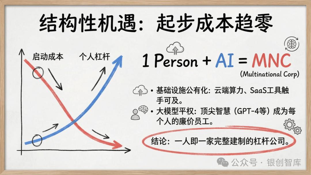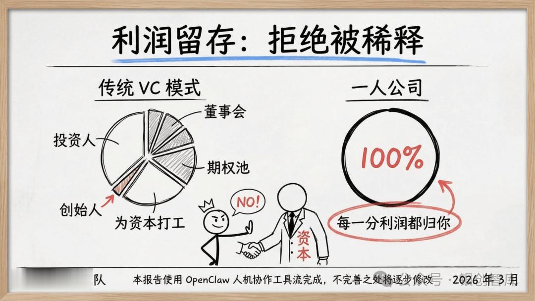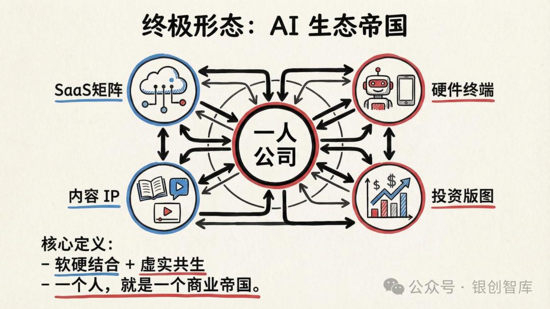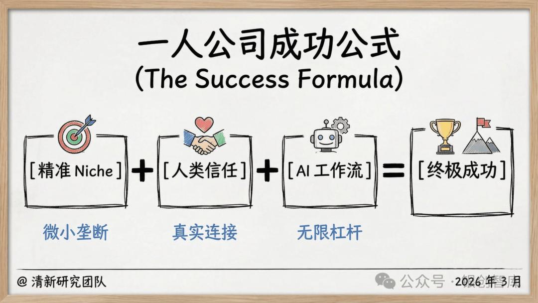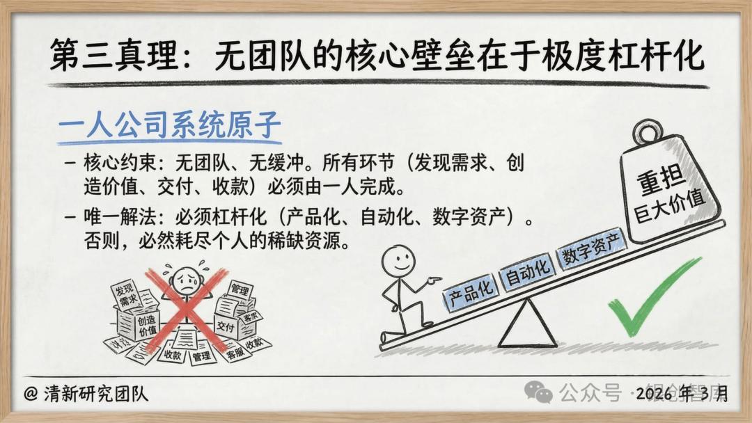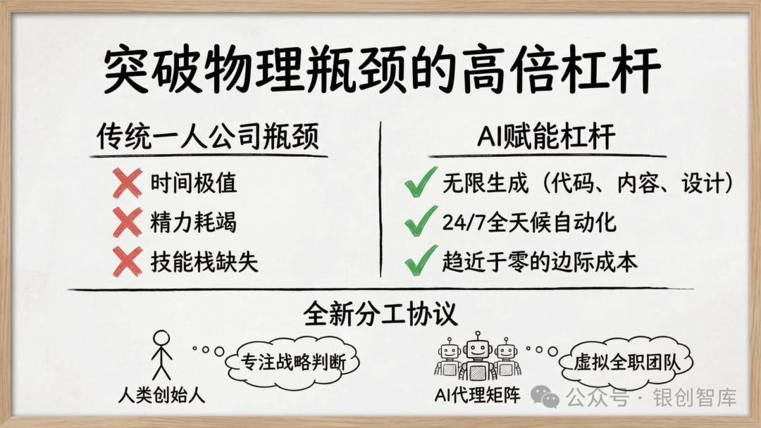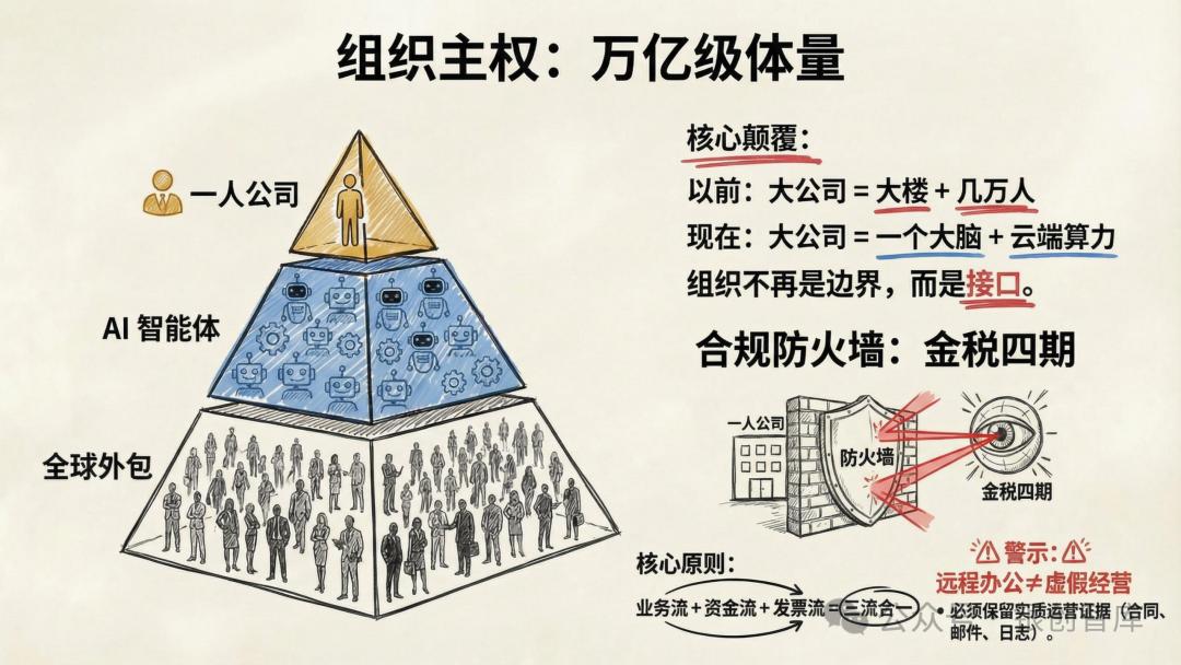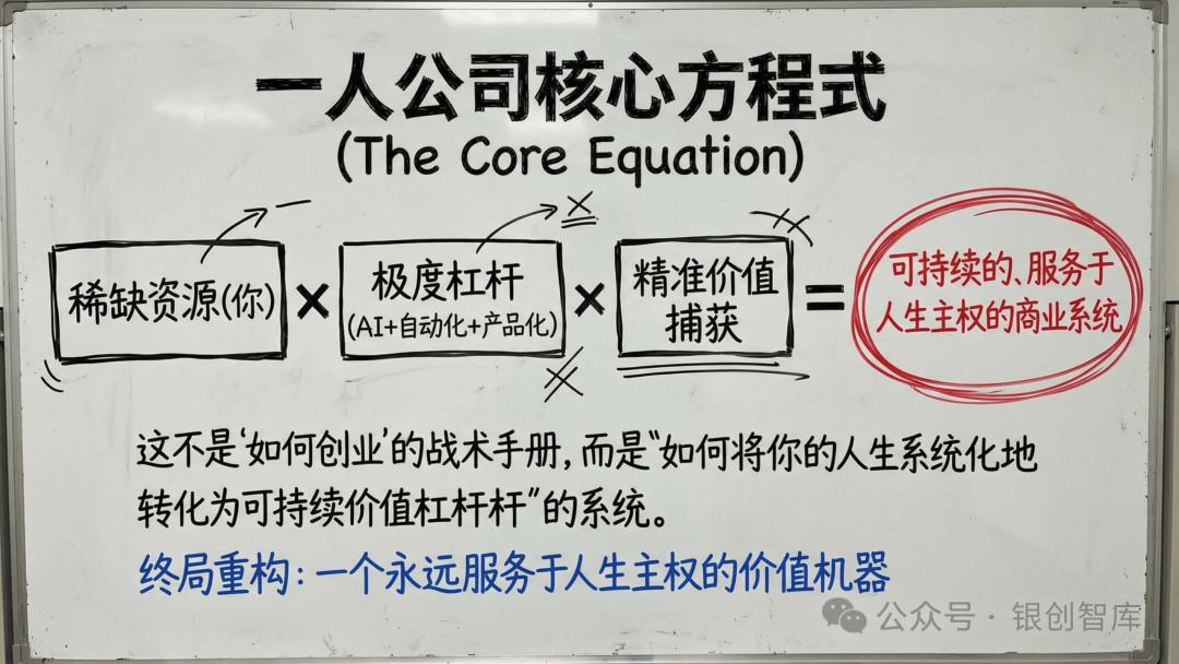 本报告直指一人公司的底层命题 —— 让商业系统服务于人生主权,而非让个体被生意消耗,通过拆解五大核心真理、六大商业蓝图、全链路实操策略,为想要打造可持续价值杠杆的个体,提供从底层逻辑到落地执行的完整体系。从定义人生边界的逆向工程,到 AI 杠杆的极致运用,从合规架构的选择到全球套利的布局,本报告力求回答 AI 时代个体创业的核心追问:如何以自身独特的原子能力为核心,构建一个低投入、高杠杆、服务于生活自由的商业机器,让一人公司成为个体掌控人生、实现价值与生活双重最优解的终极载体。而这不仅是商业形态的革新,更是个体主权的回归,是原子化社会中,每个独立经济体的必然探索。