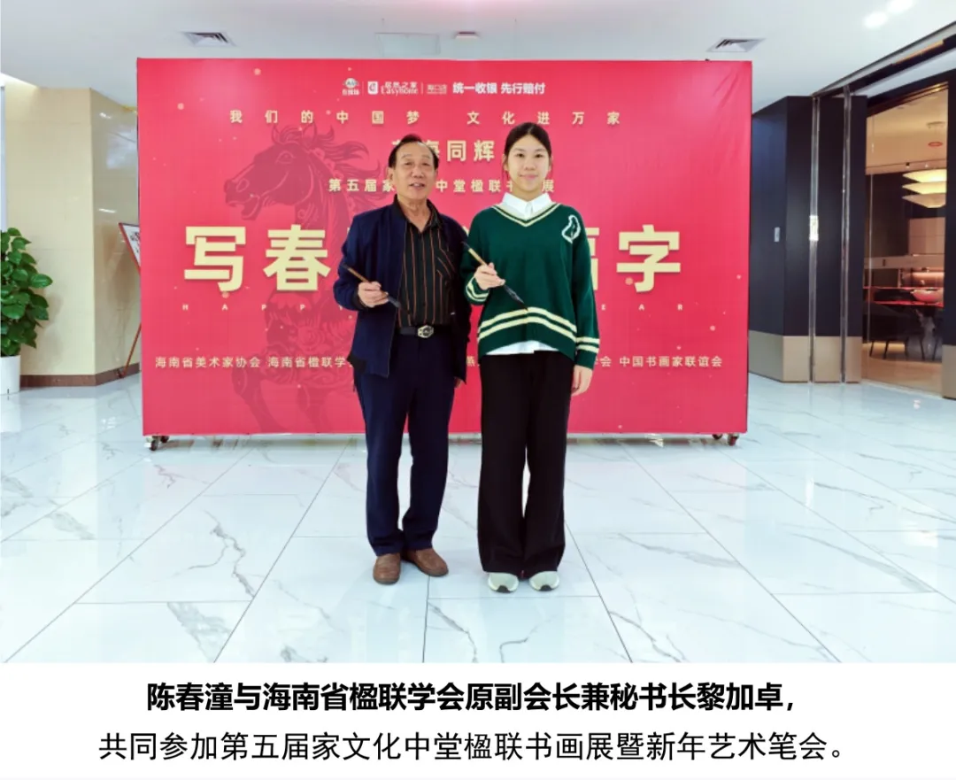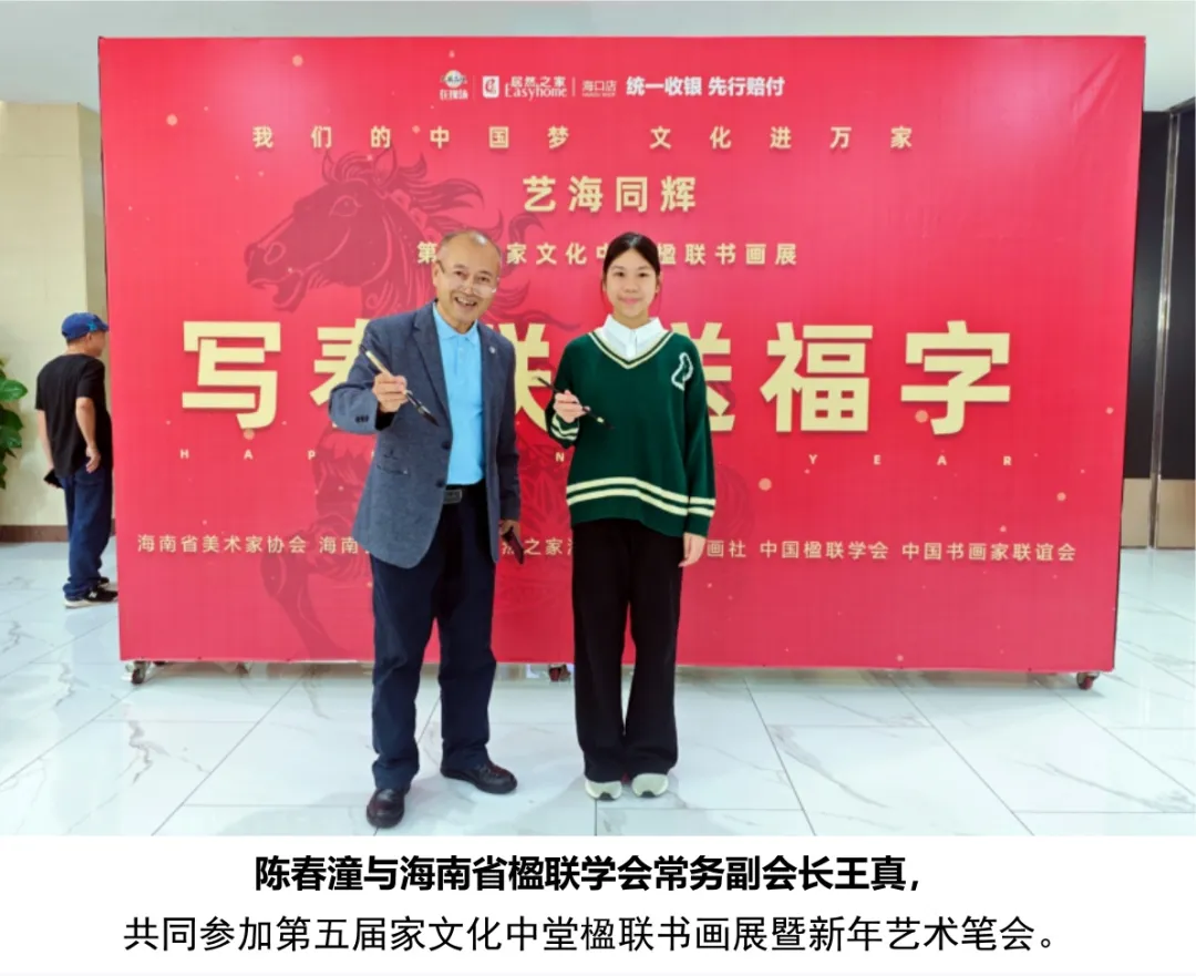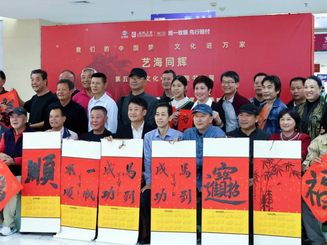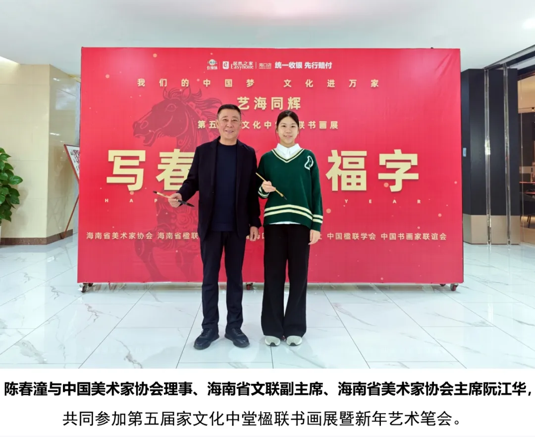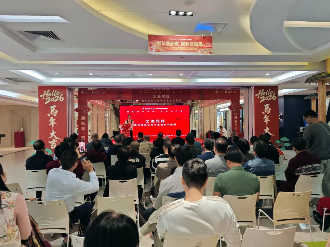 2026年1月1日,由中国楹联学会、中国书画家联谊会、燕京书画社、海南省美术家协会、海南省楹联学会、居然之家联合主办的艺海同辉——第五届家文化中堂楹联书画展暨居然之家“写春联 送福字”新年艺术笔会,在居然之家海口店隆重开幕。