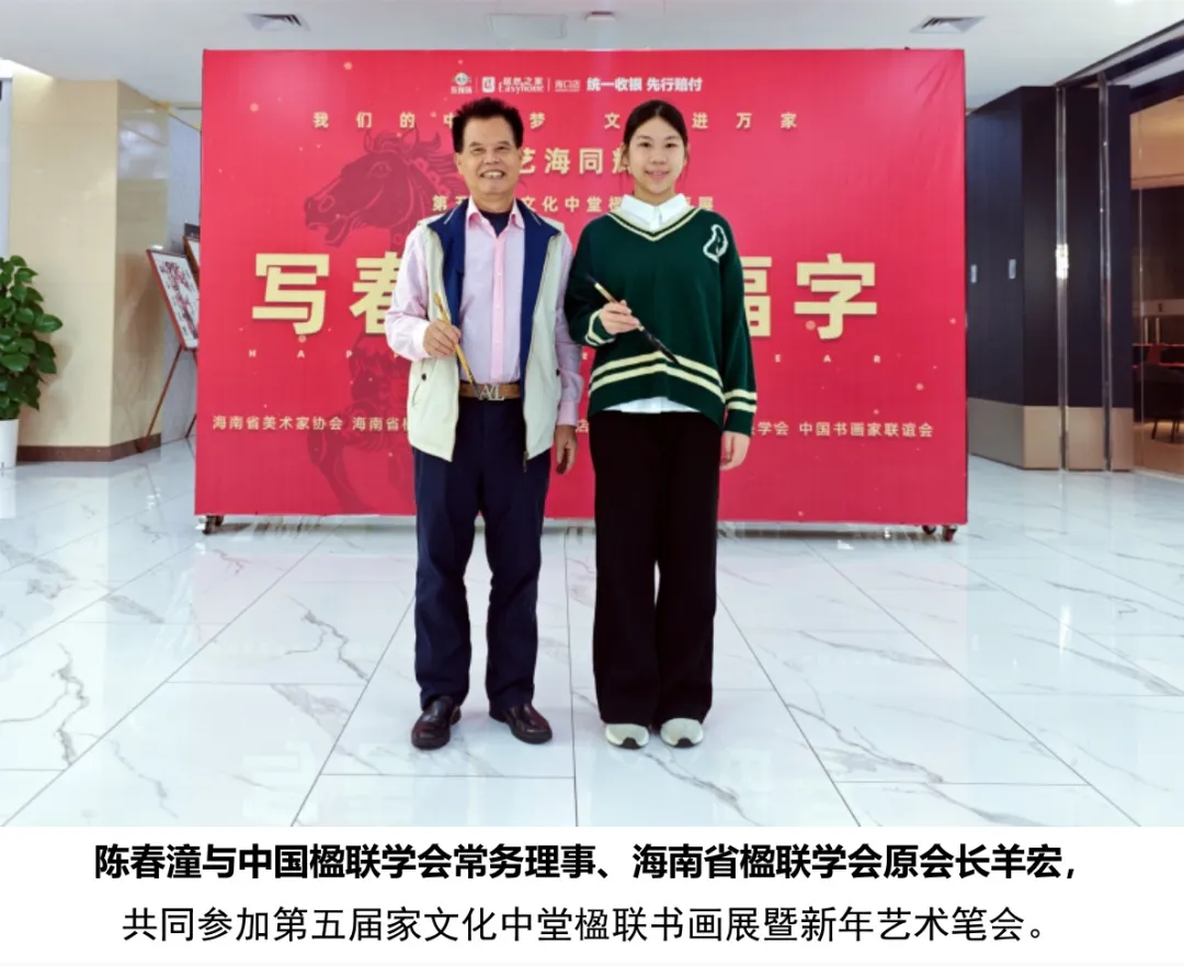 由中国楹联学会、中国书画家联谊会、燕京书画社、海南省美术家协会、海南省楹联学会、居然之家联合主办的艺海同辉——第五届家文化中堂楹联书画展暨居然之家“写春联 送福字”新年艺术笔会,既是一次成功的文化惠民实践,也为合作企业的新年发展注入文化动能,更为推动中华优秀传统文化的传承与创新写下生动注脚。