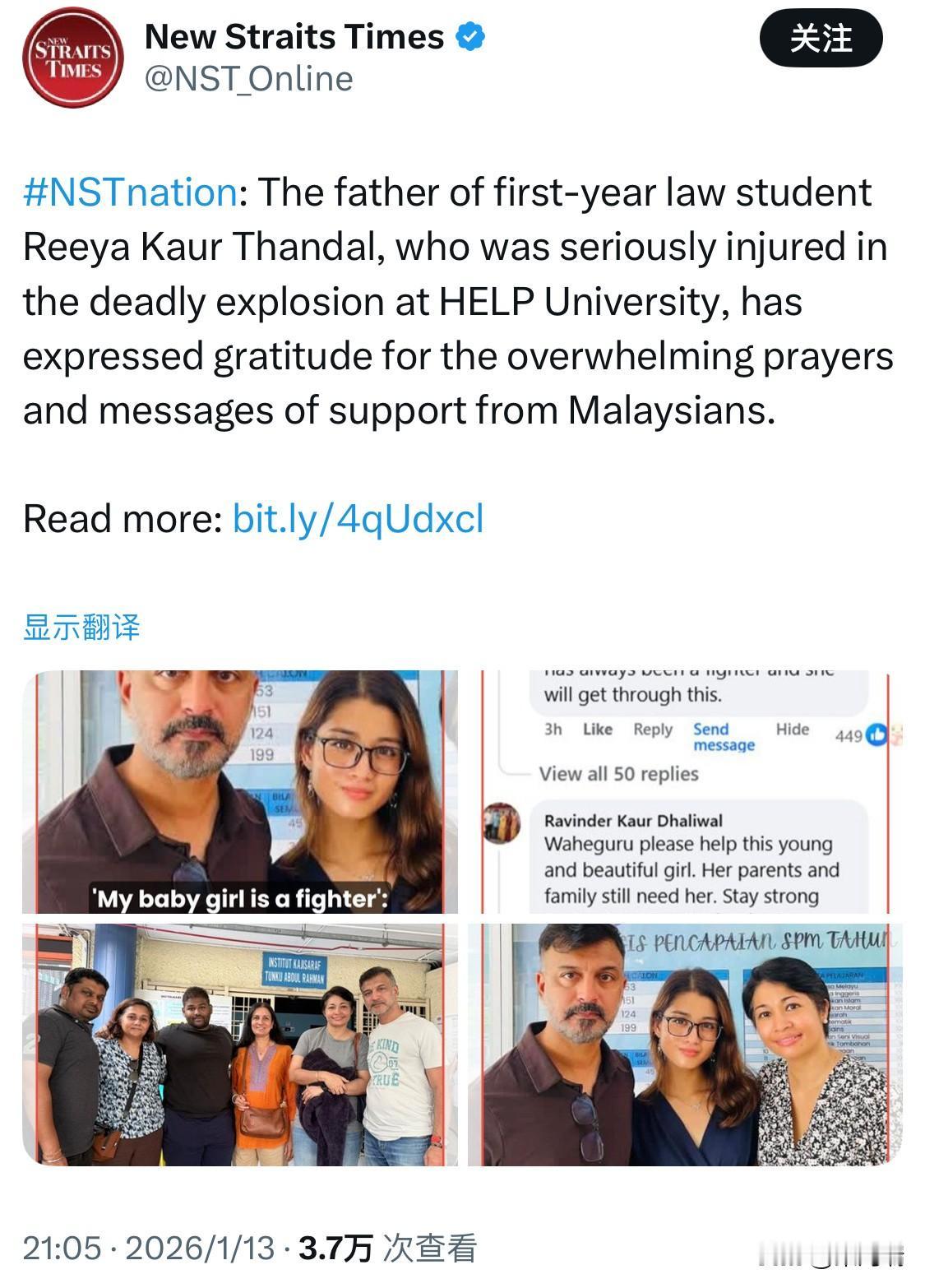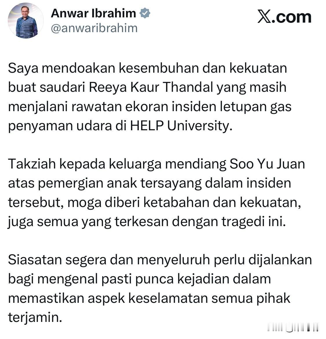 2026年1月12日,马来西亚精英大学(HELP University)位于吉隆坡武吉白沙罗(Bukit Damansara)的校区发生了一起致命爆炸事故。 该校校区4楼食堂旁的空调压缩机房/维修区。 事故原因:经警方证实,爆炸是由冷气压缩机(空调压缩机)在进行维修工程时发生机械破裂或气体泄漏引发的,并非刑事案件。爆炸造成了该楼层约30%的结构受损,但未引发火灾。 伤亡情况 事故共造成 1人死亡,9人受伤: 死者:24岁的苏宇坚(Soo Yu Jian),为拉曼大学(UTAR)电子工程系三年级学生。案发时他正在承包商公司实习,原定于本周四完成其实习期。 重伤者:19岁的法律系一年级学生 Reeya Kaur Thandal。她因飞溅的碎片导致头骨骨裂及脑出血,目前仍在医院接受治疗,处于昏迷状态(截至2026年1月14日)。 其他伤者:包括其他学生、1名大学教职员及食堂外籍员工,部分人员已陆续出院。 马来西亚首相安华已公开对死者家属表示哀悼,并下令要求对此事故进行深入且彻底的调查,以确保校园安全。 调查结果:吉隆坡警方于1月14日表示,现场调查已结束,初步判定不涉及刑事成分,受影响的建筑物已归还校方管理。 校方措施:事发后学校立即疏散了所有学生及员工,并暂时关闭受影响大楼。校方目前正配合当局调查,并为受影响学生及家庭提供支持。