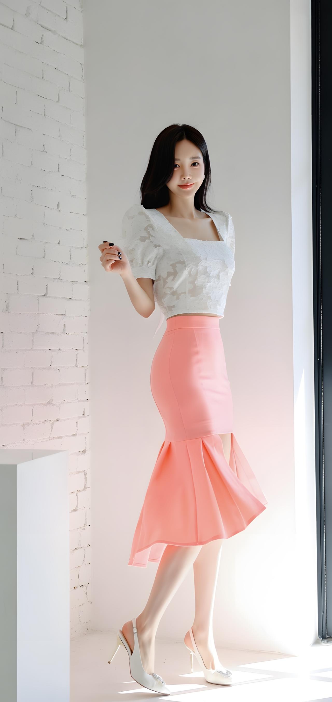 甜美白色蕾丝上衣搭配粉色百褶裙,优雅气质满分!💕👗👠