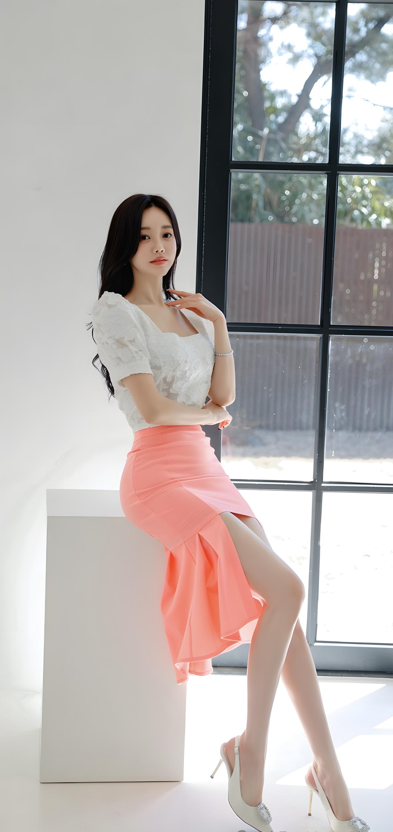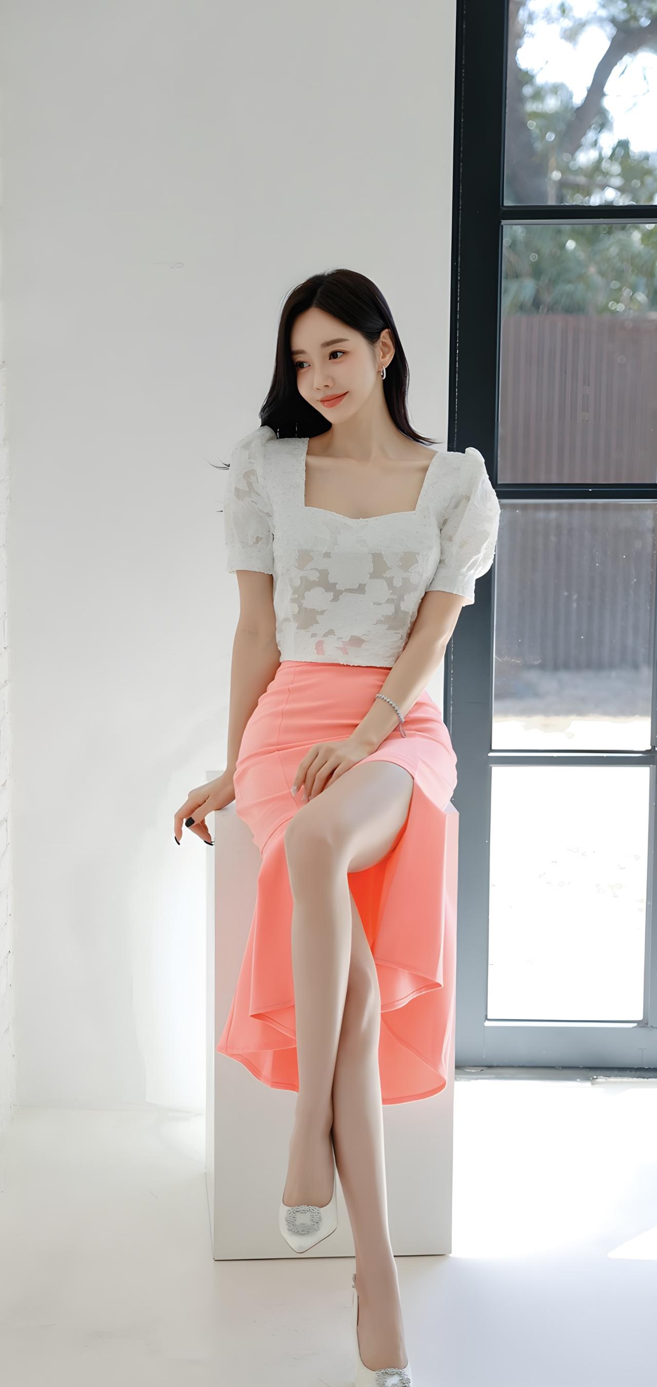 清新夏日穿搭,粉色背心搭配白色短裙,坐在木椅上,阳光洒进房间,少女感满满!🌞?