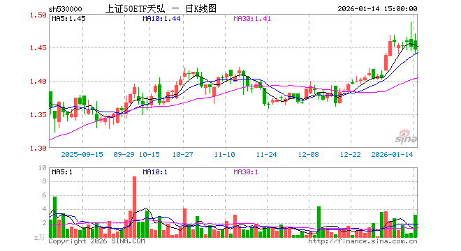 1月14日,上证50ETF天弘(530000)跌0.28%,成交额461.11万元。当日份额减少400.00万份,最新份额为10.51亿份,近20个交易日份额减少8500.00万份。最新资产净值计算值为15.17亿元。
