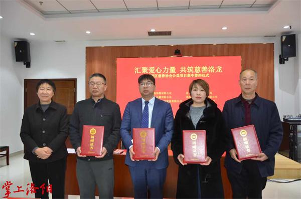 现场,洛阳市洛龙区慈善协会分别与洛龙区退役军人事务局签约设立拥军优属“忠孝”基金,重点帮扶烈士家属和家庭困难的退役军人;与河南垣鑫签约设立“慈善公益电影”基金,用于文化遗产抢救保护等;与部分企业签订“消费捐”协议,指定商品部分收益将注入“忠孝”基金。另有4家爱心企业向“忠孝”基金进行了现金捐赠。
