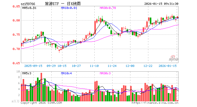 1月15日,旅游ETF(159766)开盘涨0.50%,报0.807元。旅游ETF(159766)重仓股方面,中国中免开盘跌0.38%,上海机场跌0.09%,中国东航跌0.51%,宋城演艺涨0.59%,南方航空涨0.00%,中国国航涨0.35%,华侨城A跌0.39%,锦江酒店涨3.56%,春秋航空涨0.00%,首旅酒店涨3.69%。
