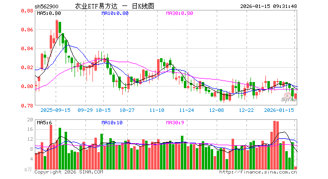 1月15日,农业ETF易方达(562900)开盘跌0.25%,报0.787元。农业ETF易方达(562900)重仓股方面,牧原股份开盘涨0.17%,温氏股份跌0.06%,海大集团涨0.04%,新希望跌0.11%,梅花生物涨1.77%,大北农涨0.00%,圣农发展涨1.86%,生物股份跌0.52%,北大荒涨0.00%,隆平高科跌0.32%。