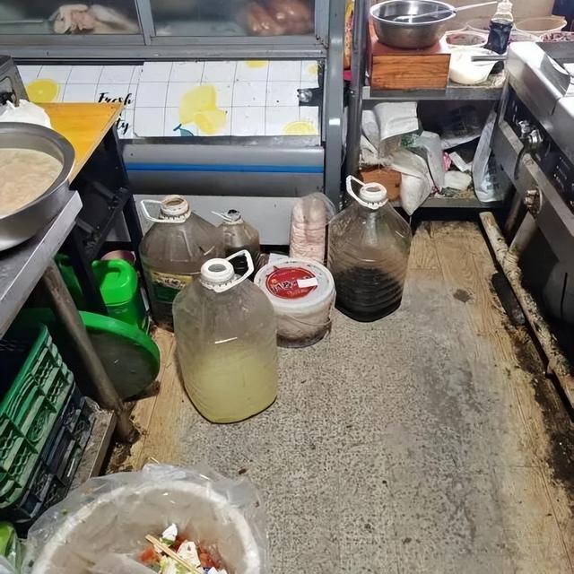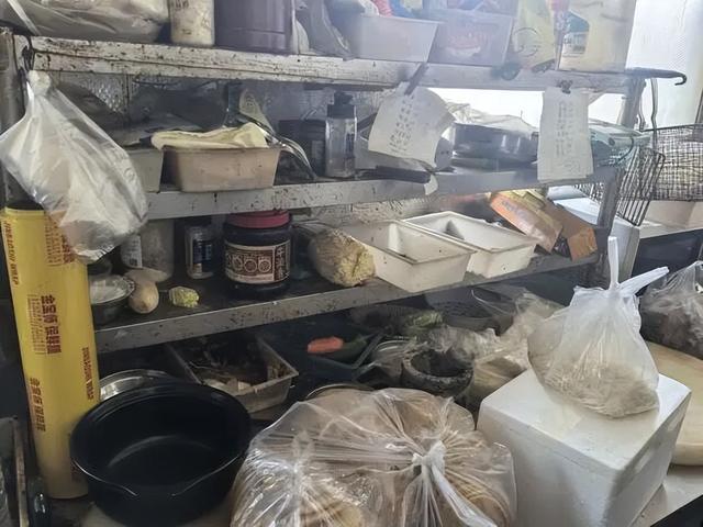 上榜理由:加工环境差、桌面台面脏乱;经营、销售使用的食品未按要求贮存;个人物品、非食品等与食品原料混放。