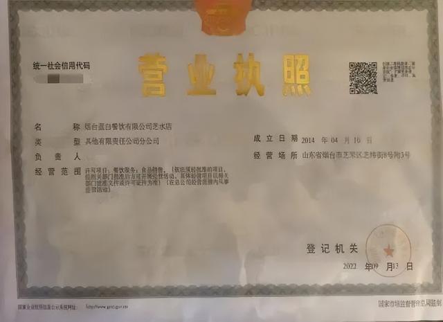 (烟台蓝白餐饮有限公司芝水店)