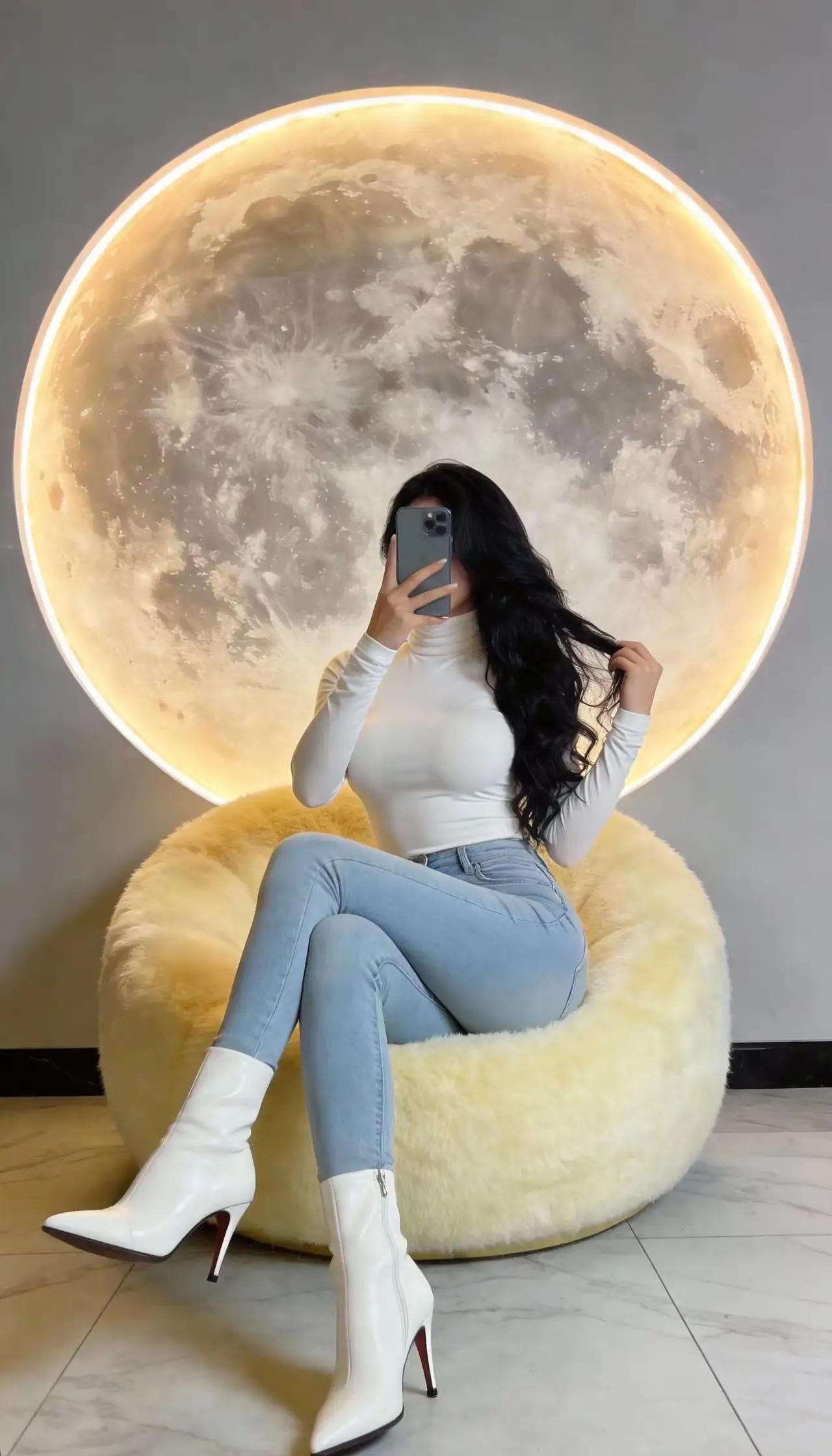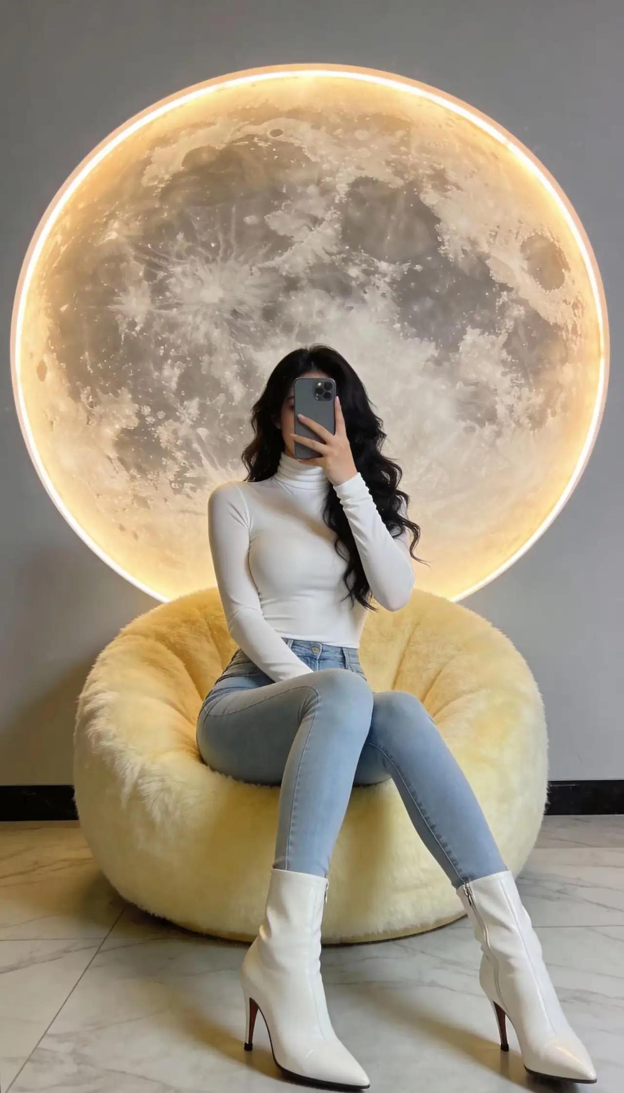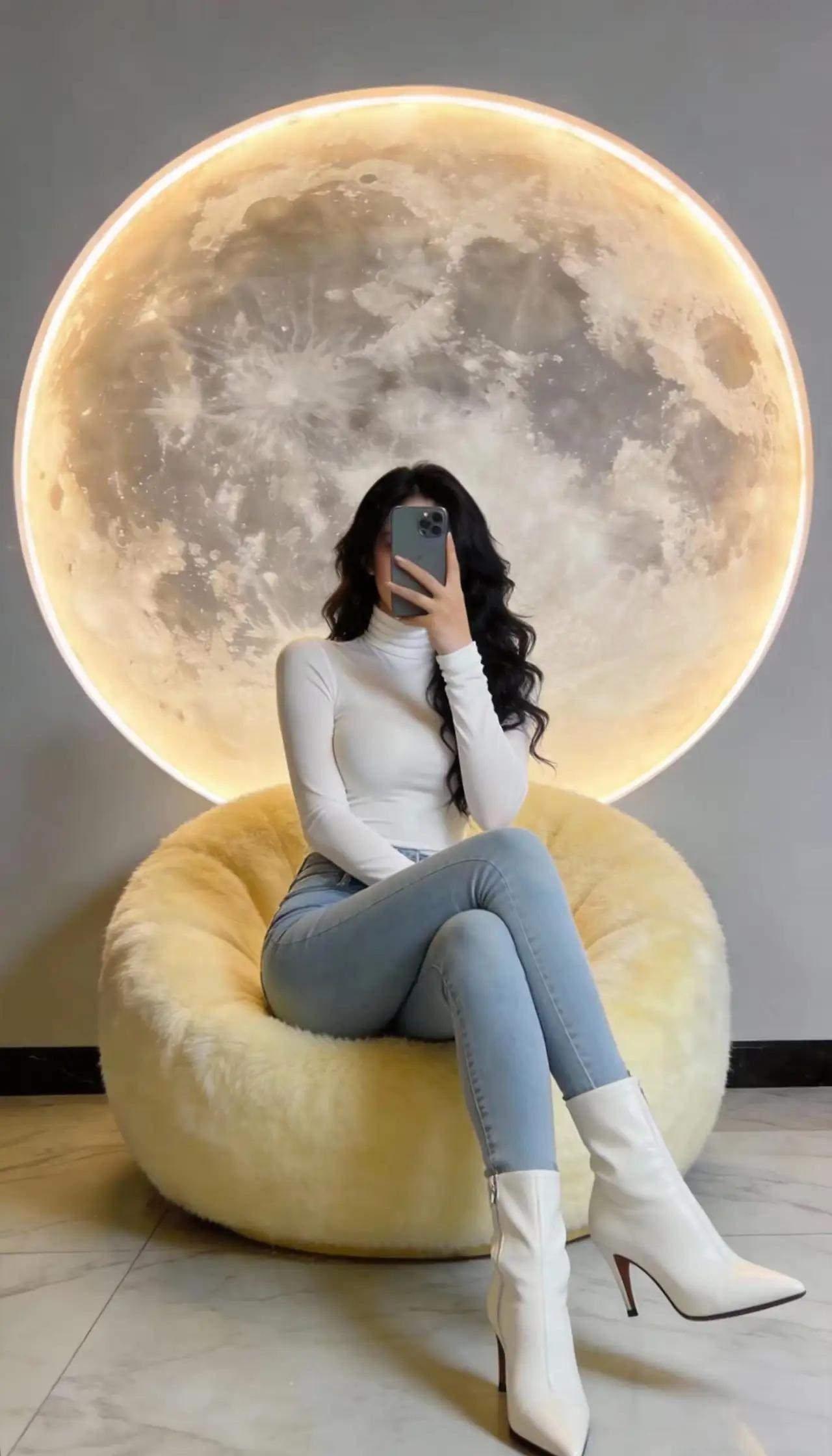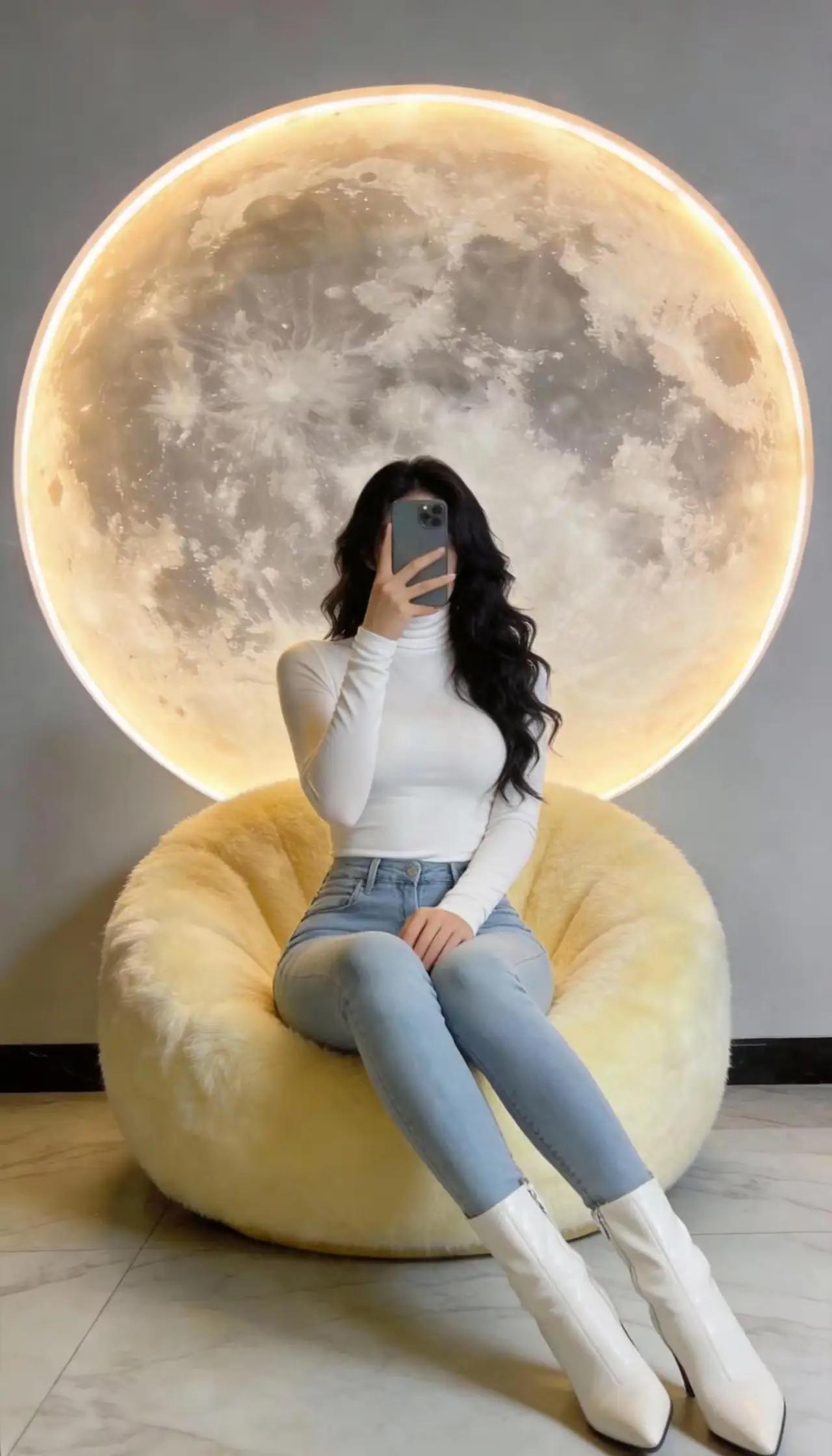 在梦幻的月亮前,优雅自拍,时尚穿搭