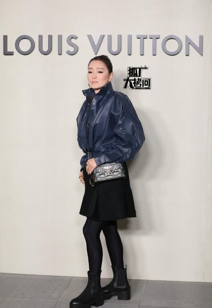 巩俐出席LV的某个活动,她身着深蓝色皮质外套,搭配黑色短裙与黑色短靴,手持黑色手包,整体造型干练又显年轻,不过这种皮衣配短裙的搭配,确实有点挑战大众的审美,很多人觉得不太协调,被网友调侃像去小商品市场进货。尽管如此,花甲之年的她状态依旧挺拔紧致,丝毫不见岁月痕迹,展现了“初代谋女郎”的抗老状态与独特魅力