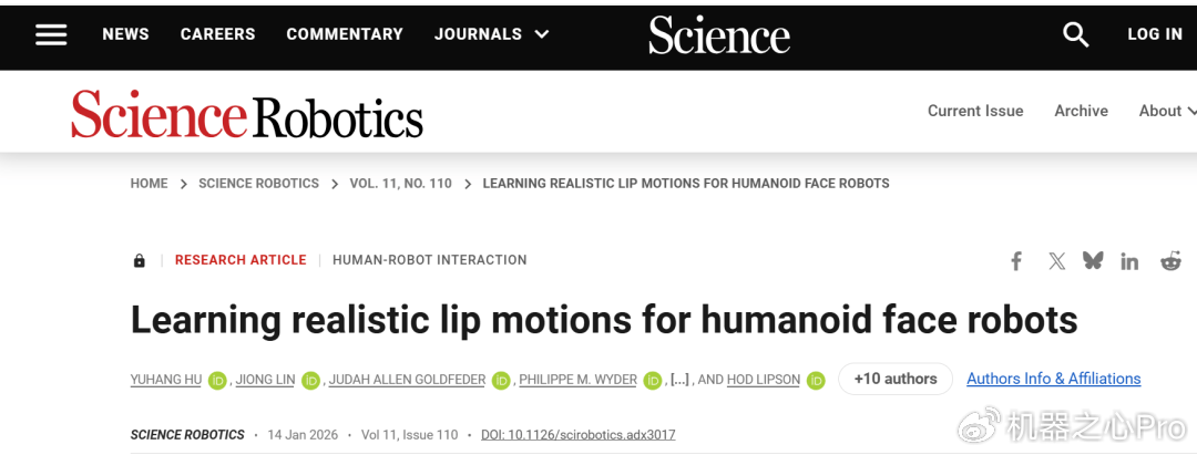 2026年1月15日,一项来自美国哥伦比亚大学工程学院的突破性研究正式发表于《ScienceRobotics》,并登上期刊封面。该研究展示了一项全新的机器人技术:一台具备仿生面部结构的人形机器人,通过深度学习实现与语音和歌曲同步的真实唇部运动。它能跟着人类的语言精准张合嘴唇,甚至,能跟着音乐唱歌。标志着人形机器人在人类最丰富的交流通道之一唇部表达上,迈出了突破性一步。