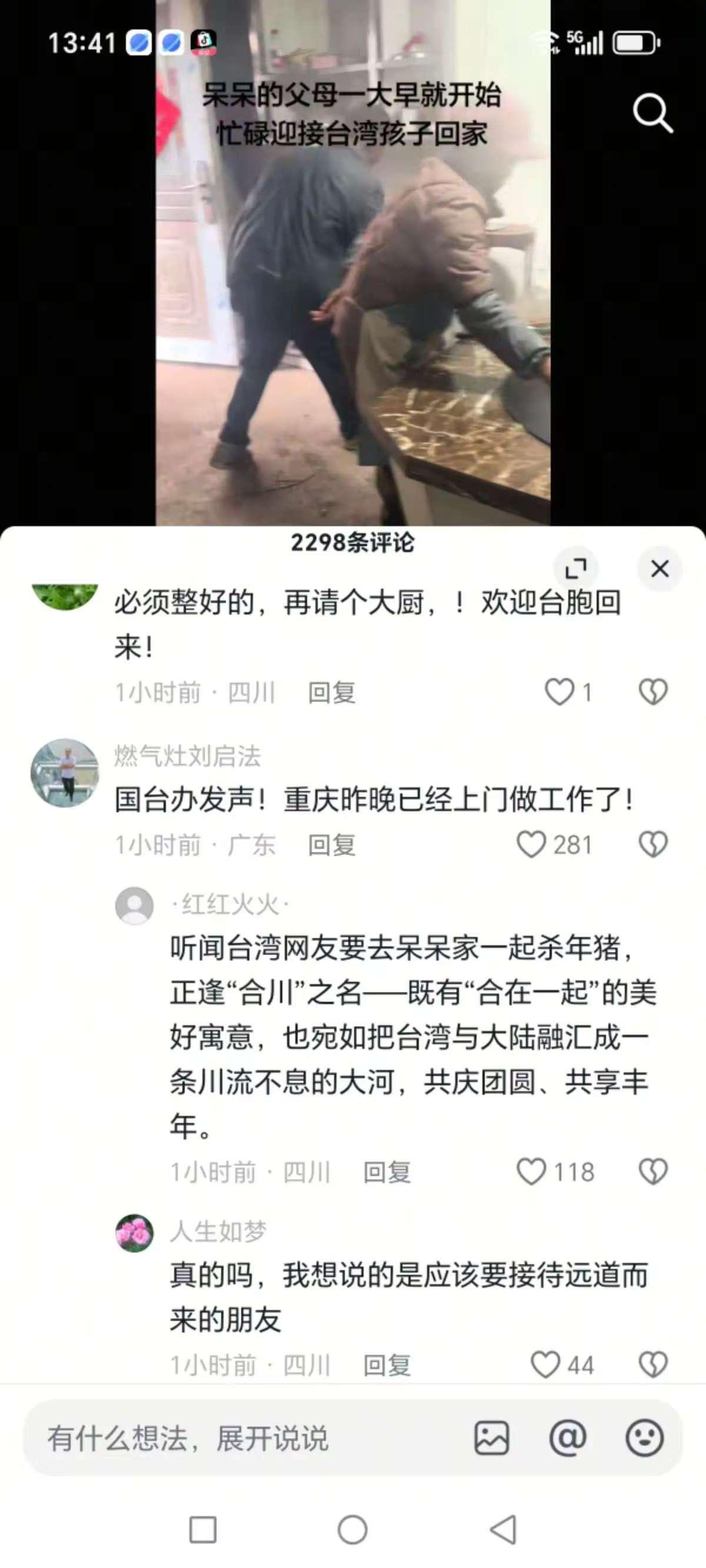 呆呆家刨猪饭火到了台湾,呆呆父母才休息了两天,现在又要重整旗鼓开干了,呆呆妈已洗好了锅台,爸爸准备好了柴火。 等着台湾同胞来到自家尝刨猪饭。 呆呆现在也是好起来了,一个刨猪饭拉近了两岸人民的感情! 合川文旅听取网友的意见,以后每年的1月11日定为刨猪节了。