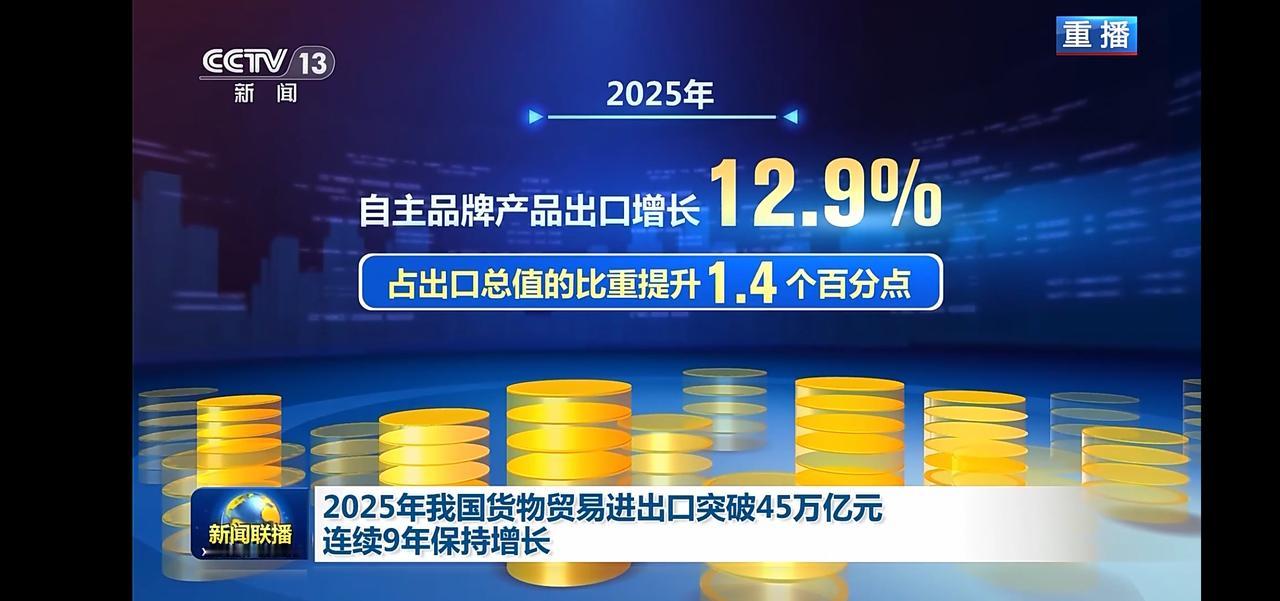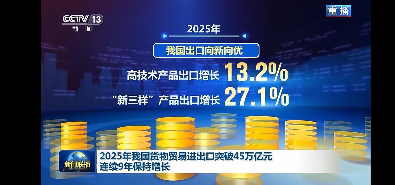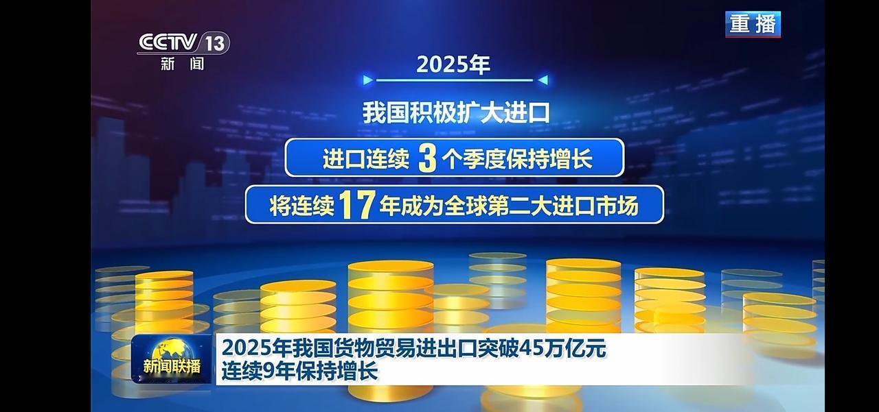 2025年我国货物贸易进出口突破45万亿元,连续9年保持增长!💰📈