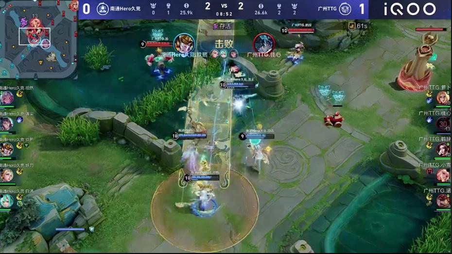 鹤辞不知火舞一闪控起多人一血爆发,Hero反打打出一换二