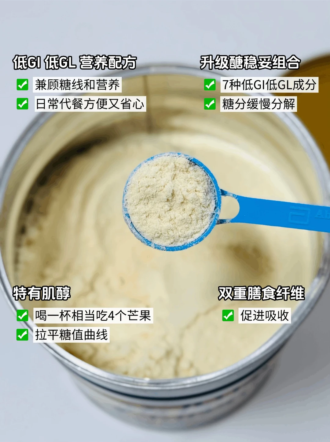 怡保康里面的升级醣稳妥组合,包含7种低GI低GL成分,不像精白米面那样吃完🍬线立马失控。