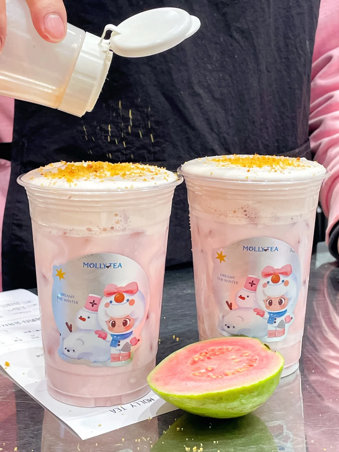 茉莉奶白又出新品啦!不仅有新品还有主题新周边! 周边藏冬香卡、2款藏冬毛毡贴纸和3款藏冬系列冰箱贴都美!!还有同款主题纸袋,纸杯还是带细闪的布林布林的!!好貌美~~ ✔️茉莉奶油芭乐 我为芭乐芝士抗大旗!!🧀 撒了南姜粉的芭乐芝士清甜回甘、丝滑浓郁好好喝!! 搭配茉莉龙芽、雪绒芝士厚乳和芭乐汁!! 清新又醇厚!!芭乐味巨浓郁!! ✔️茉莉芭乐奶皮子 额外加了奶皮子!双倍奶香更香醇!! 入口芭乐清甜mix咸香,这杯我可以连喝三天!🥹