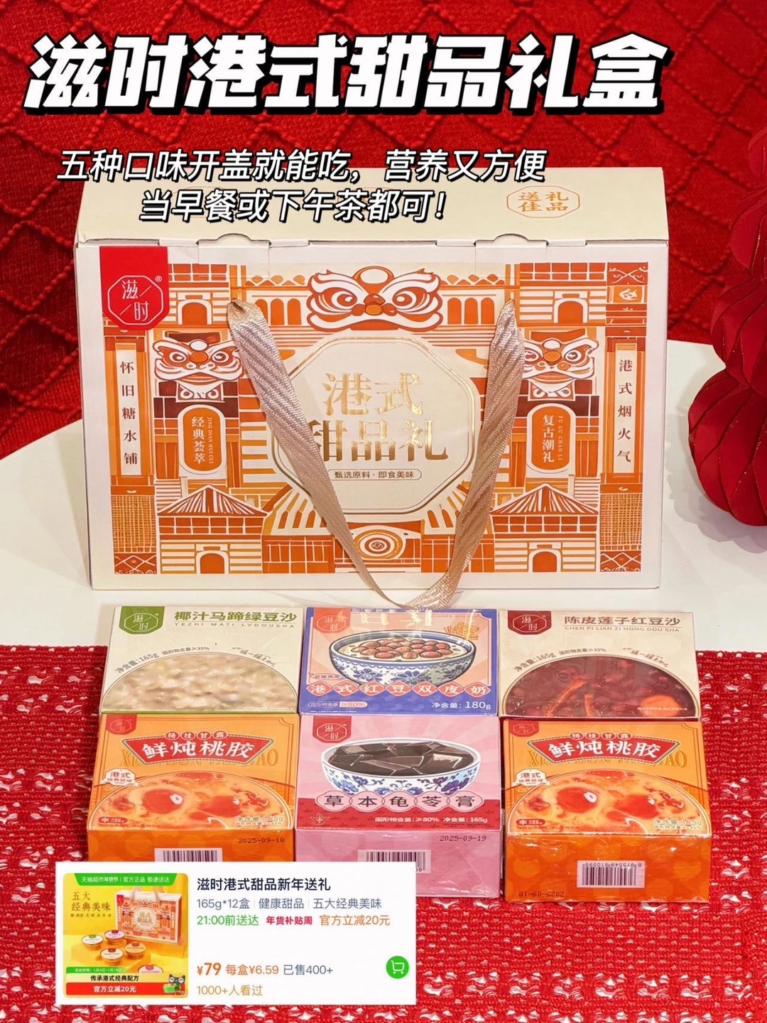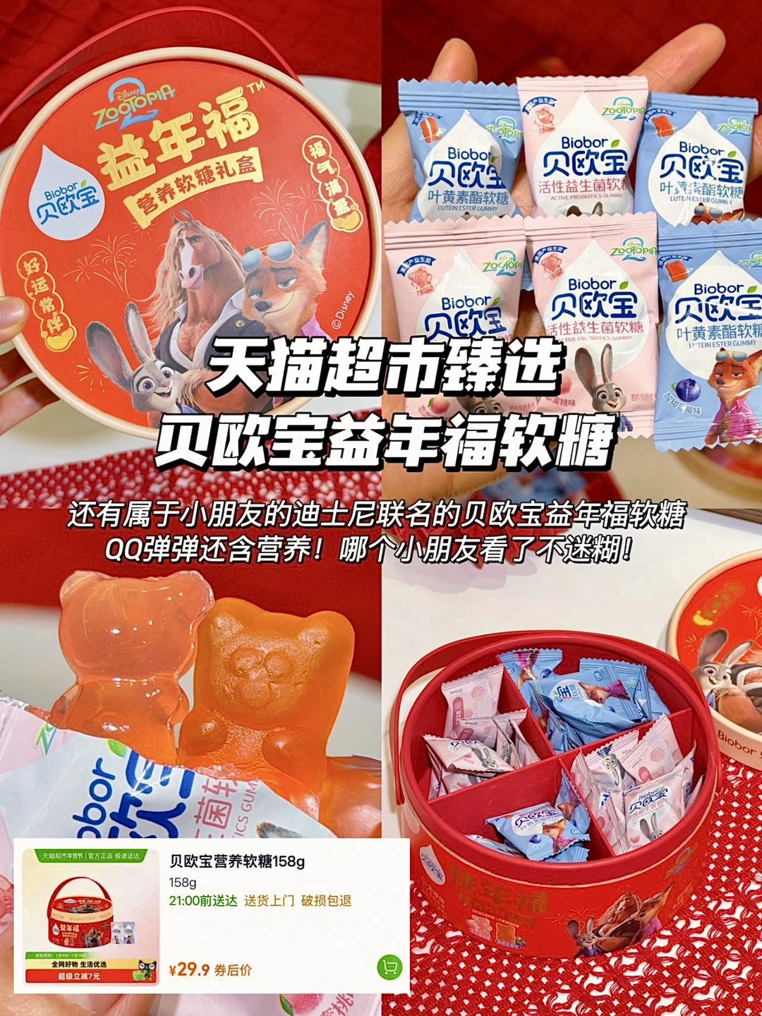 爱吃甜的宝子别错过滋时港式甜品礼盒,五种口味开盖就能吃,营养又方便,当早餐或下午茶都可!还有属于小朋友的迪士尼联名的贝欧宝益年福软糖,QQ弹弹还含营养,哪个小朋友看了不迷糊👭