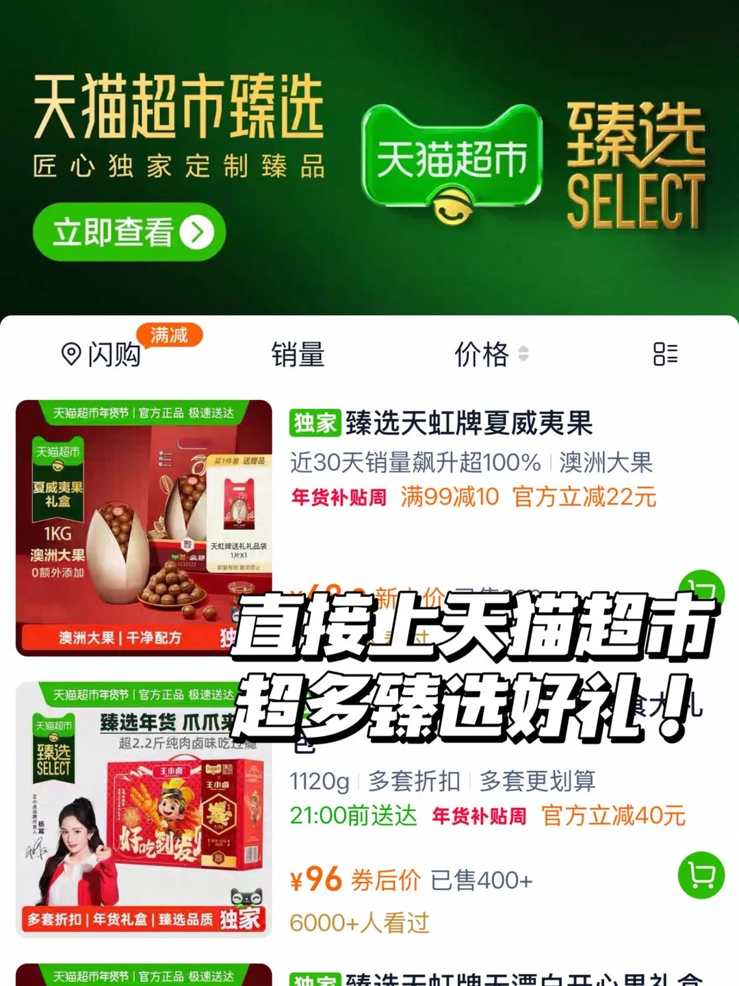 Get同款优惠直接👉打开淘宝搜【天猫超市】,这些神仙年货直接抄作业,不用等快递,过年备货省时又省钱