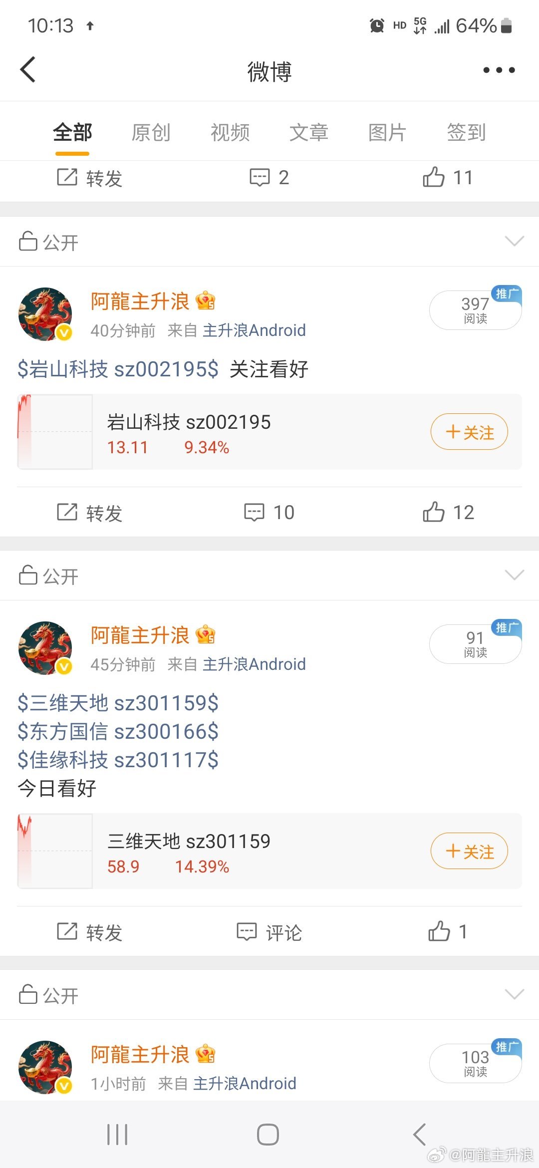 龍哥早盘分享 2个20厘米➕一个10厘米 恭喜参与的伙伴点赞加168支持龍哥$岩山科技 sz002195$ $三维天地 sz301159$ $佳缘科技 sz301117$ $东方国信 sz300166$